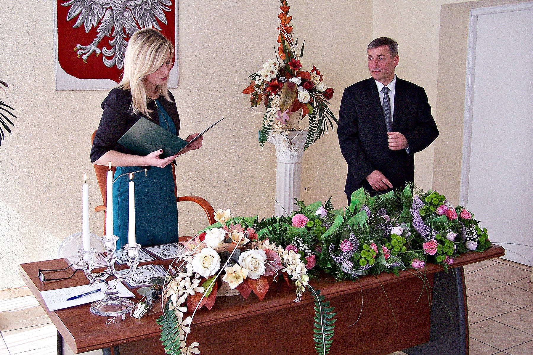 Życzenia złożyli im Burmistrz Ozimka Jan Labus oraz Zastępca Kierownika USC Anna Pawlicka.