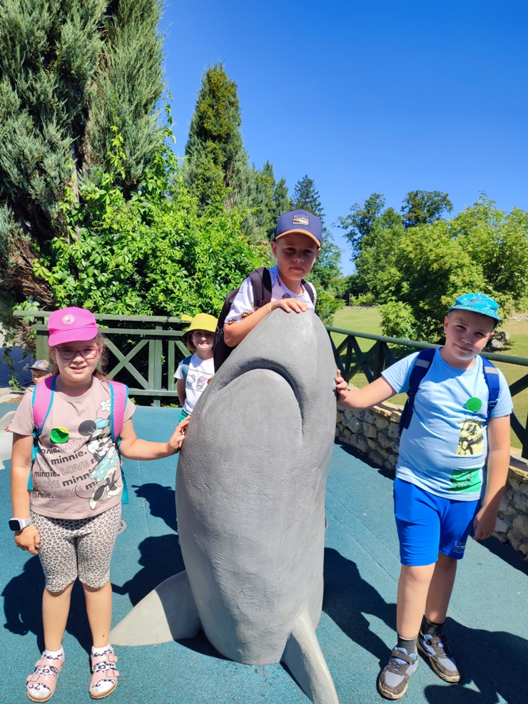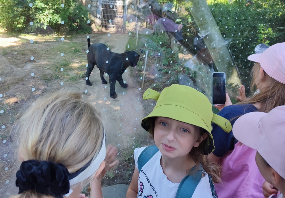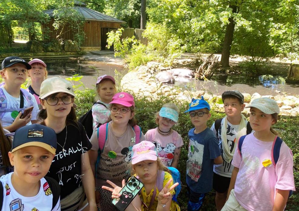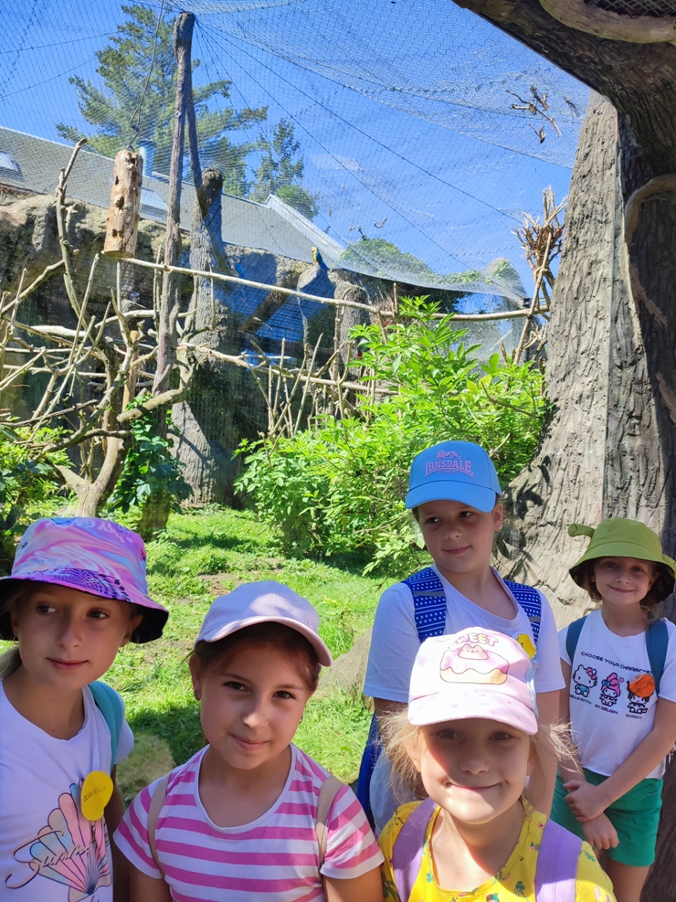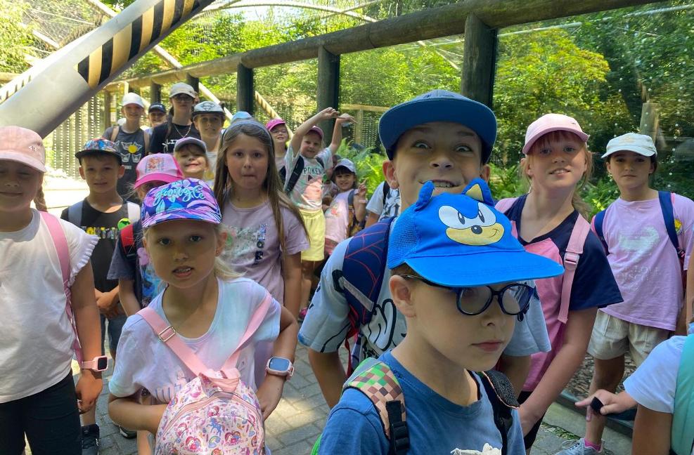Drugi dzień naszej PÓŁKOLONII w JEDYNCE spędziliśmy w ZOO w Opolu. Dzieci były zachwycone! Każdy znalazł tu coś dla siebie: czarną pumę, rekina, wilki czy tłuściutkie hipopotamy. Najwięcej zachwytu wywołały lemury, które były na wyciągnięcie ręki, tuż pod nogami, chętnie pozowały do zdjęć. Dzieci, bardzo grzeczne, wiedziały, że nie wolno ich głaskać. Dostojne żyrafy wyciągały swoje cętkowane szyje, ogromne łosie dumnie kroczyły po swoim terytorium, a pająki... brrr, dobrze, że nie uciekły! Było gorąco i upalnie, dzieci chętnie "odpoczywały" na placu zabaw, bawiąc się wesoło. Moglibyśmy tu zostać do wieczora, ale trzeba było wracać. Sklep z pamiątkami kusił magnesami, maskotkami i przeróżnymi zabawkami, ale musieliśmy jechać, gdyż w szkole czekał przepyszny obiad - kluseczki śląskie z mięsem w pieczeniowym sosie i buraczkami. Każdy się zajadał! Rano dzieci złożyły "Przyrzeczenie kolonisty", że będą grzeczne i zdyscyplinowane. I takie były przez cały dzień - ale także cudownie radosne i roześmiane oraz ciekawe świata zwierząt.