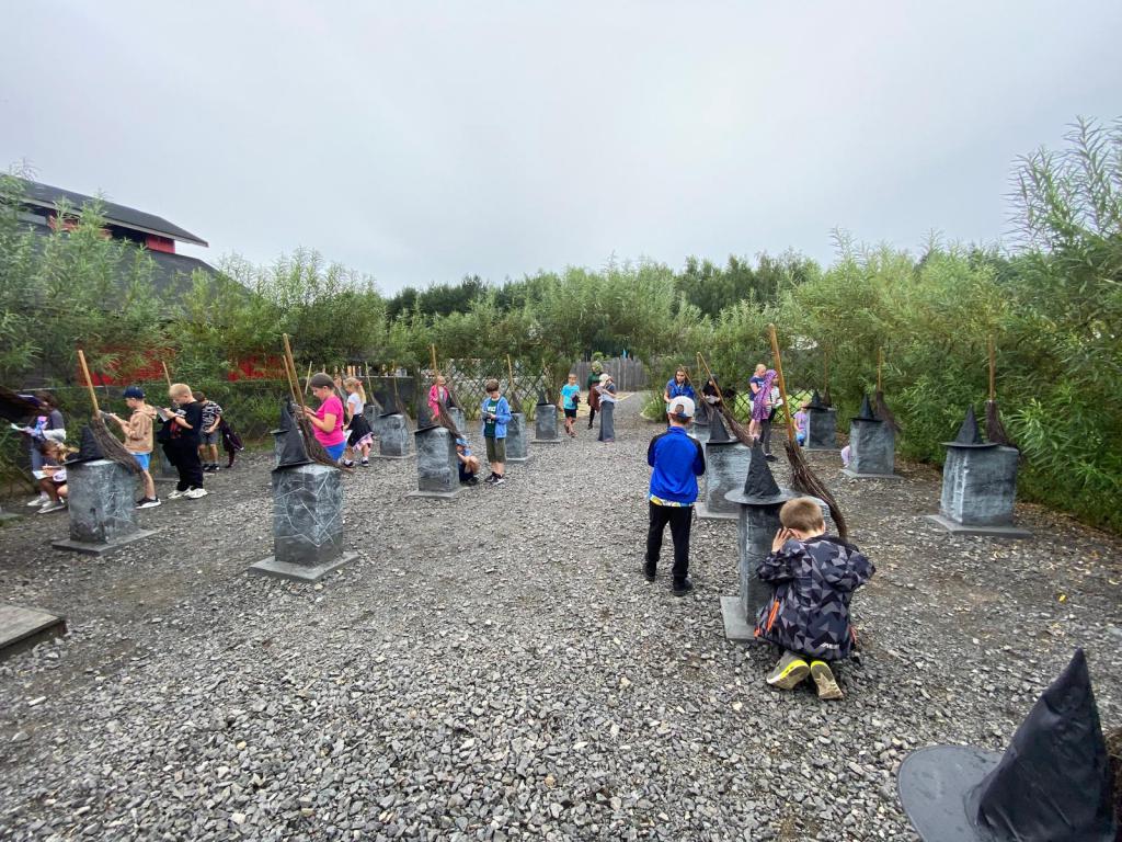 Dzieci odwiedziły mini-zagrodę ze zwierzętami i miały okazję pogłaskać prawdziwe owce oraz dowiedzieć się o ich zwyczajach. Spacerując ścieżkami parku poznawały świat mieszkających tam elfów! Te tajemnicze istoty nie tylko rozbawiały, ale też zachęcały dzieci do rozwiązywania różnych zagadek. Nie zabrakło zabawy w świerkowym labiryncie, gdzie liczył się spryt i orientacja w terenie. Podczas tworzenia eliksirów można było wyczuć magię w powietrzu – dosłownie i w przenośni!