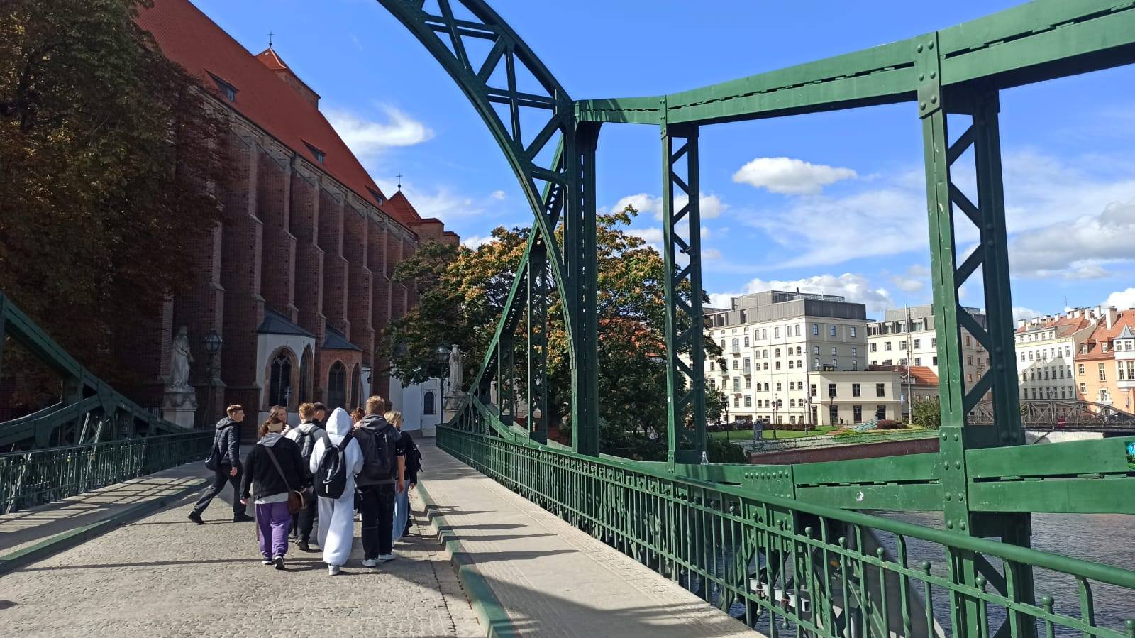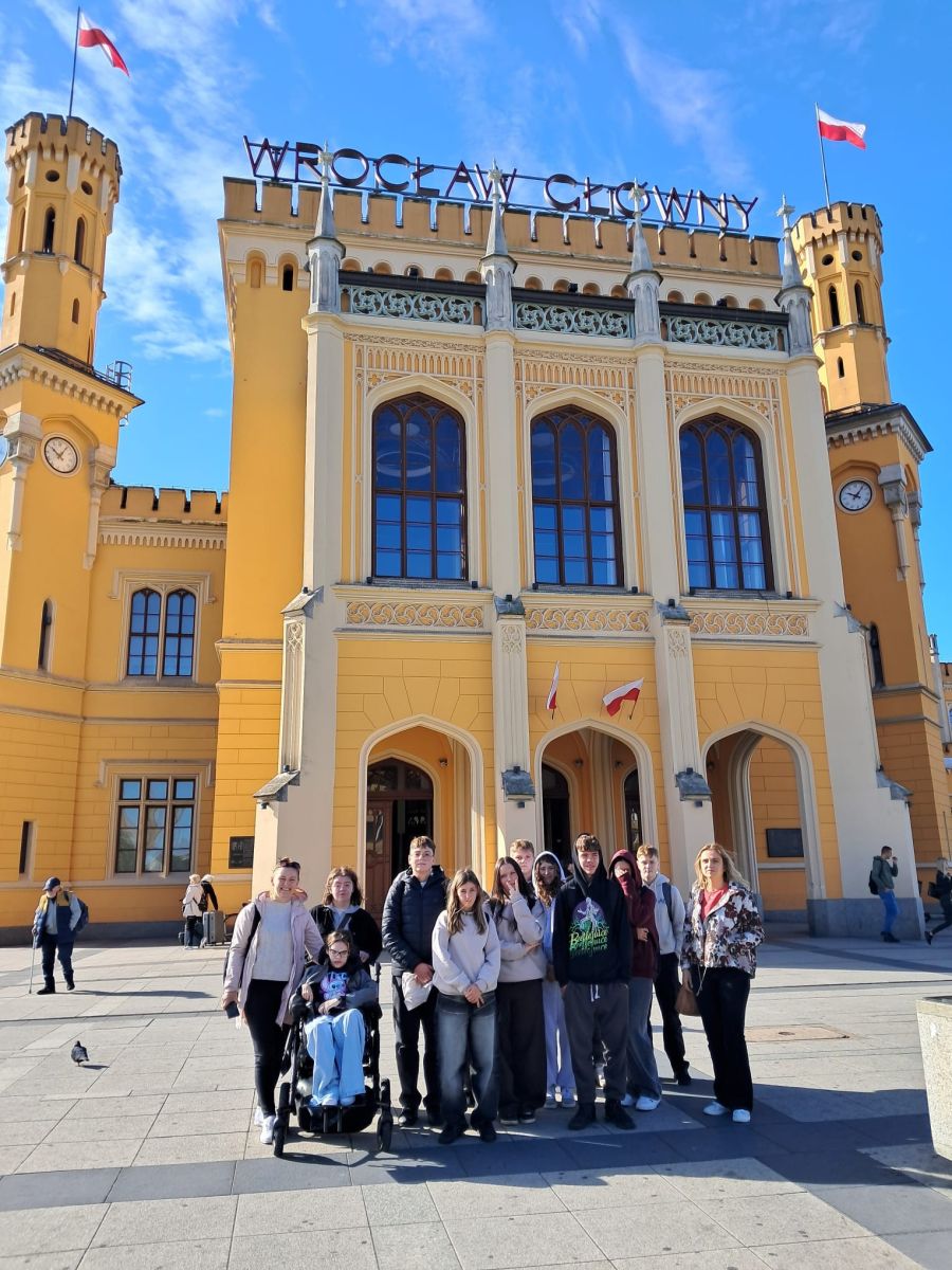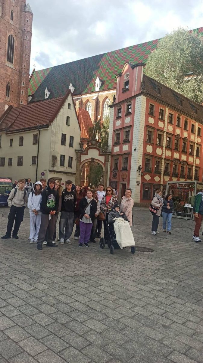 W środę, 24 września, klasa VIII wraz z wychowawczynią panią Joanną Mordak i panią Teresą Glensk wybrała się na niezapomnianą wycieczkę krajoznawczą do Wrocławia. Pierwszym punktem programu było Hydropolis – wyjątkowe centrum wiedzy o wodzie, mieszczące się w XIX-wiecznym podziemnym zbiorniku wodnym. Następnie spacerowaliśmy po urokliwym Ostrowie Tumskim, skąd wspięliśmy się na wieżę katedry św. Jana Chrzciciela, aby podziwiać zapierającą dech panoramę miasta. Nie mogło zabraknąć również wizyty na wrocławskim rynku, pełnym pięknej architektury i klimatu. Podróż pociągami i tramwajami połączyliśmy z prawdziwym „treningiem kondycyjnym” – nasze aplikacje zarejestrowały tysiące kroków! Pogoda i humory dopisały, a dzień ten na długo pozostanie w naszej pamięci. Serdecznie dziękujemy za pomoc w organizacji wyprawy zaangażowanym rodzicom I nauczycielom.