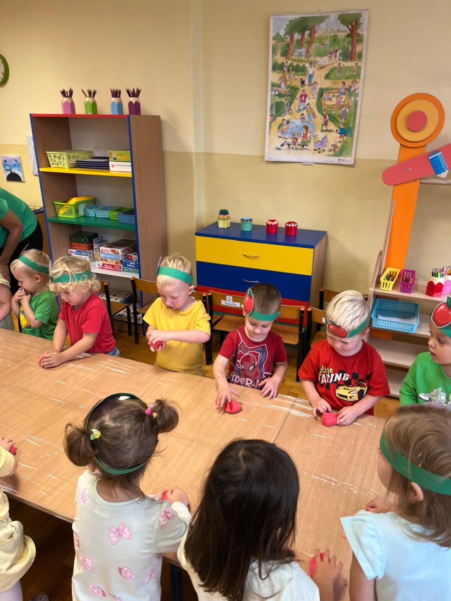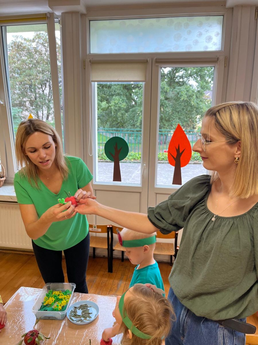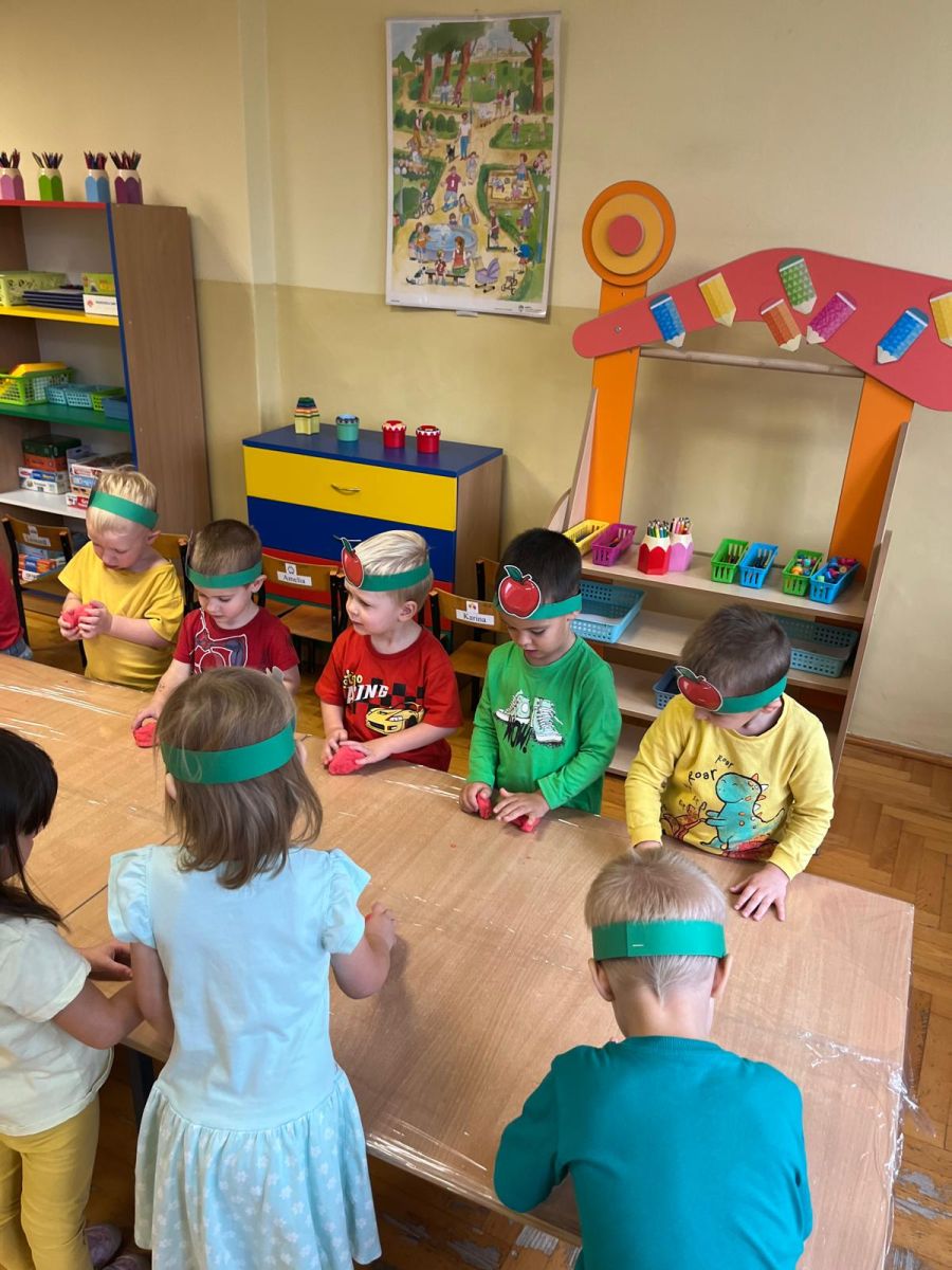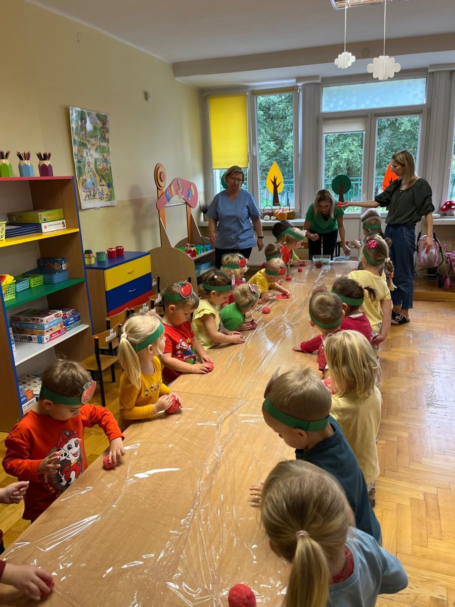 Na zakończenie spotkania przedszkolaki rozwijały swoją kreatywność i zdolności manualne, tworząc jabłka z masy solnej.
