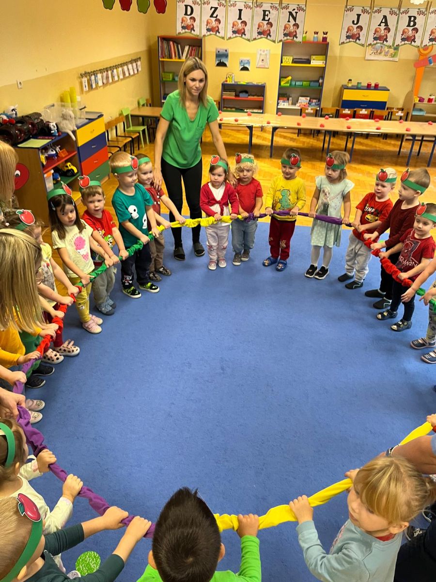 Ten dzień upłynął w atmosferze radości, wspólnej zabawy i nauki. Dzieci nie tylko świetnie się bawiły, ale także dowiedziały się, jak wartościowe i różnorodne mogą być jabłka.