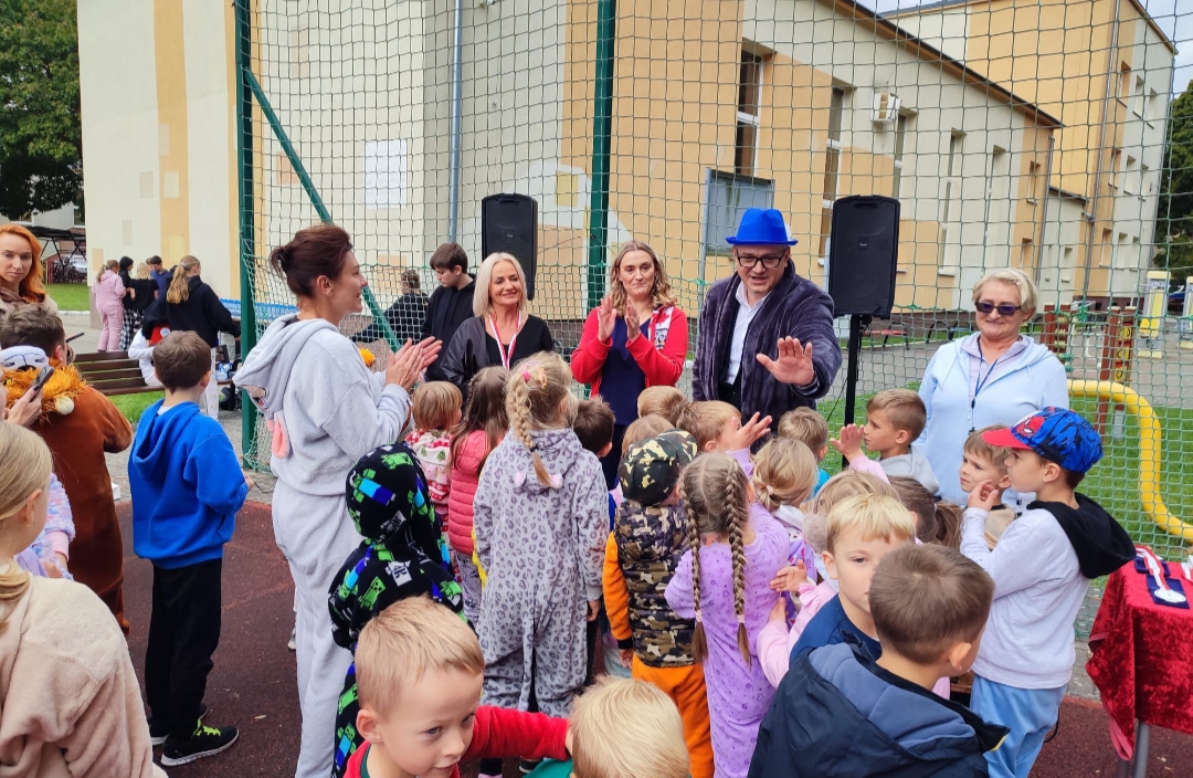 Dla wielu podopiecznych fundacji piżama stała się nieodłączną częścią codzienności. To co dla nas jest związane z odpoczynkiem i spokojem dla innych jest symbolem walki o zdrowie i życie. Wszyscy: przyjaciel dzieci Burmistrz Gminy i Miasta Ozimka pan Mirosław Wieszołek, przedszkolaki, uczniowie ,nauczyciele oraz pracownicy placówek chcieli okazać wsparcie wszystkim najmłodszym pacjentom i ich rodzinom poprzez zmianę sportowych ciuchów w piżamy i udział w tak wspaniałej imprezie. Na zakończenie przedszkolaki i uczniowie zostali obdarowani medalem dla przedszkola oraz słodkimi upominkami.