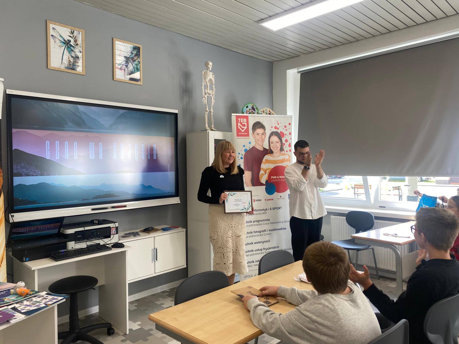 W naszej szkole odbyło się wyjątkowe spotkanie z przedstawicielką Europe Direct Opole, która opowiedziała uczniom o różnych projektach i inicjatywach Unii Europejskiej skierowanych do szkół. Młodzież miała okazję dowiedzieć się więcej o możliwościach, jakie daje uczestnictwo w programach europejskich, a także o korzyściach płynących ze współpracy międzynarodowej. Dodatkowo, pan Oliwer ze szkoły TEB Liceum i Technikum w Opolu przeprowadził inspirujące warsztaty fotograficzne. Uczniowie mogli poznać podstawy fotografii, dowiedzieć się, jak tworzyć ciekawe kadry i wykorzystywać światło w praktyce. Dziękujemy za inspirującą wizytę i ciekawe zajęcia!