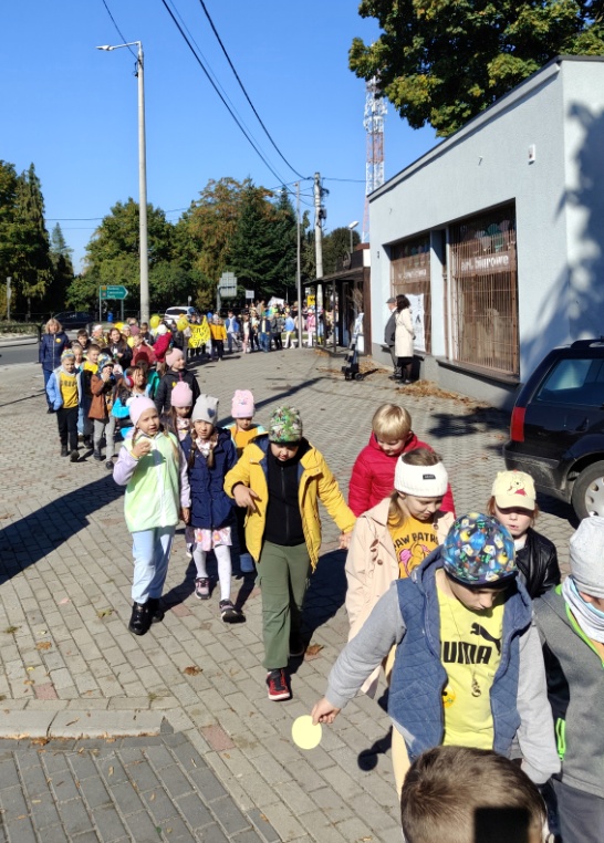 Podczas pochodu nie zabrakło żółtych buziek, transparentów z hasłami życzliwości oraz słów zachęcających do uśmiechu i wzajemnego szacunku. W ten sposób pokazaliśmy, że w naszej szkole życzliwość i uśmiech są silniejsze niż złość i przemoc.