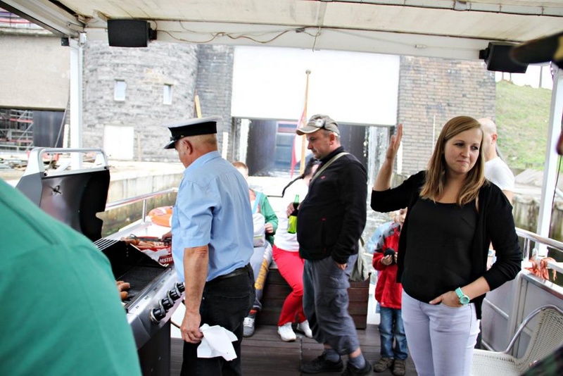Kapitan statku z wielką znajomością rzeczy opowiadał o historii i sprawach technicznych związanych ze śluzą i Kanałem Gliwickim. W międzyczasie uczestnicy posilali się kiełbaskami z rożna przygotowanymi przez bosmana.
