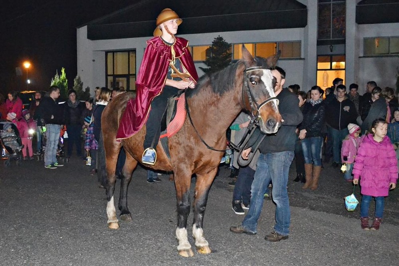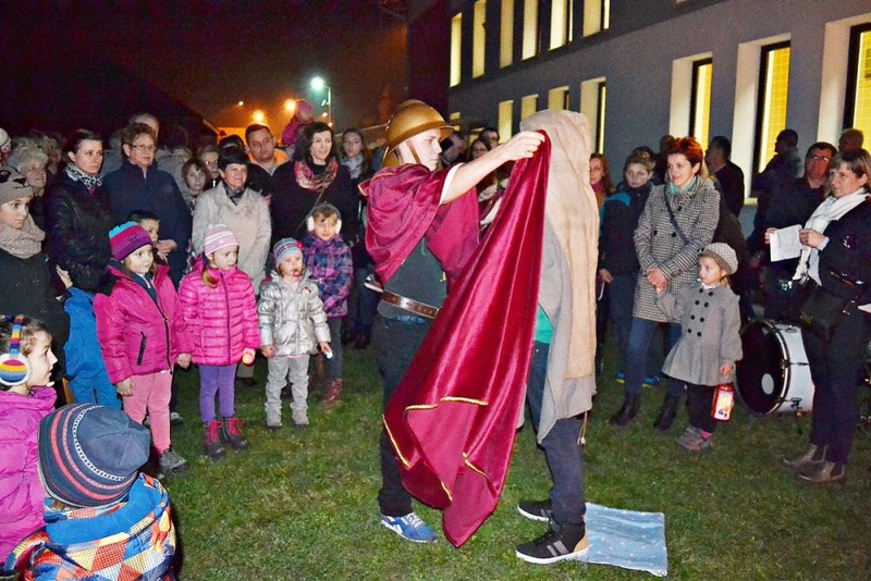 Po uroczystej mszy św., podczas której ks. Jan Bejnar przedstawił historię i życiorys św. Marcina wszyscy uczestnicy udali się przemarszem na plac za remizą OSP. O bezpieczeństwo zadbali strażacy, którzy zabezpieczyli trasę. Jadącemu na koniu patronowi towarzyszył żebrak oraz dzieci niosące lampiony i śpiewające piosenki ku jego czci. Następnie wszyscy zebrali się przed wielkim ogniskiem, gdzie przedstawiono symboliczny akt, w którym patron dzieli się połową swojego płaszcza z żebrakiem - w ten sposób stał się symbolem miłosierdzia. W rolę św. Marcina wcielił się Adam Sobota, żebraka Bartłomiej Widera, a narratora Anna Klimas.