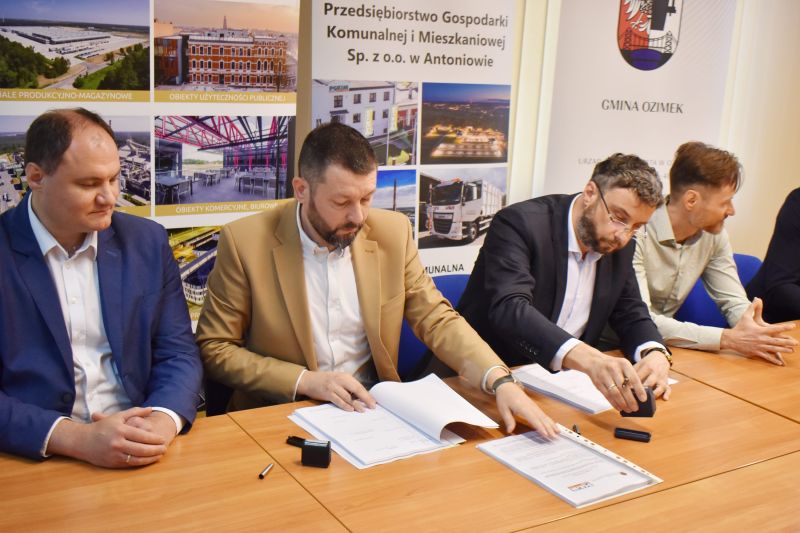 Podczas podpisania umowy obecni byli m.in. Prezes Wojewódzkiego Funduszu Ochorny Środowiska i Gospodarki Wodnej w Opolu Aleksandra Drescher, Burmistrz Ozimka Mirosław Wieszołek, Prezes PGKiM Sp. z o.o. Roland Wrzeciono, wykonawca dokumentacji projektowej – Przewodniczący zespołu projektantów Prof. Zbigniew Plutecki oraz Członek Zarządu Adamietz Sp. z o.o. Michał Chrobrowski.