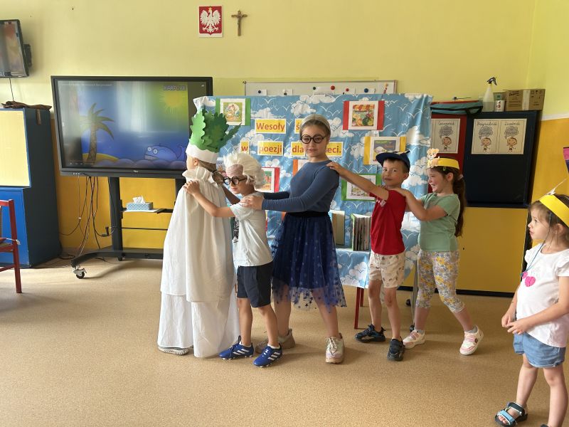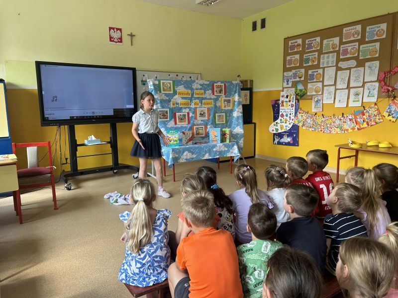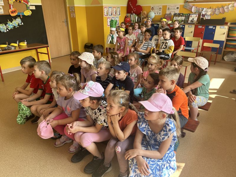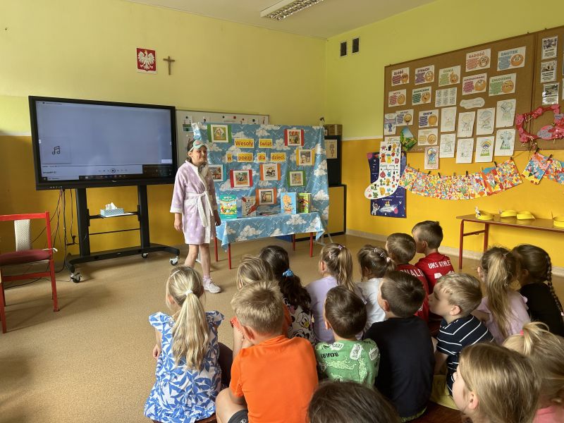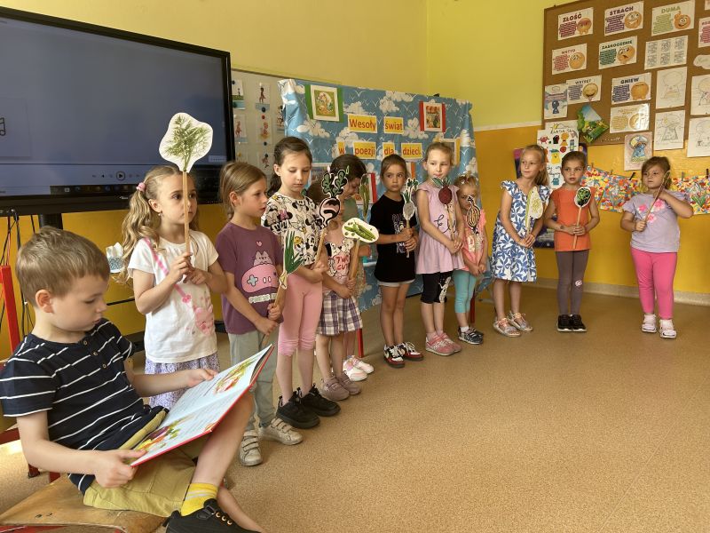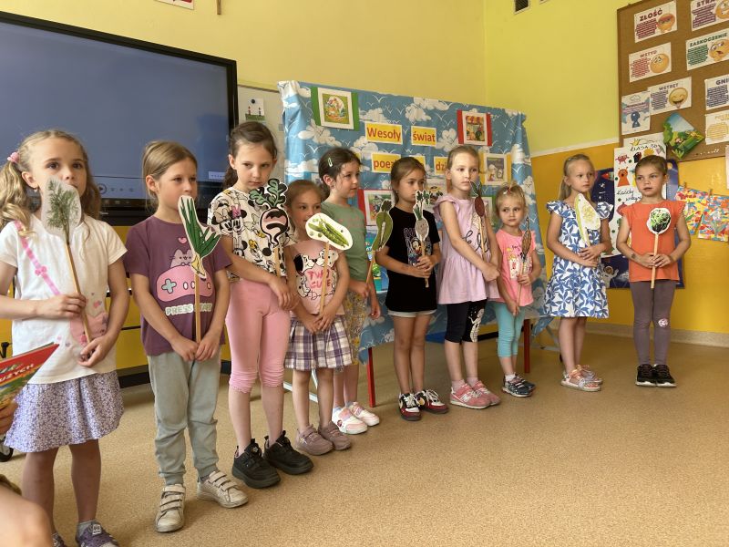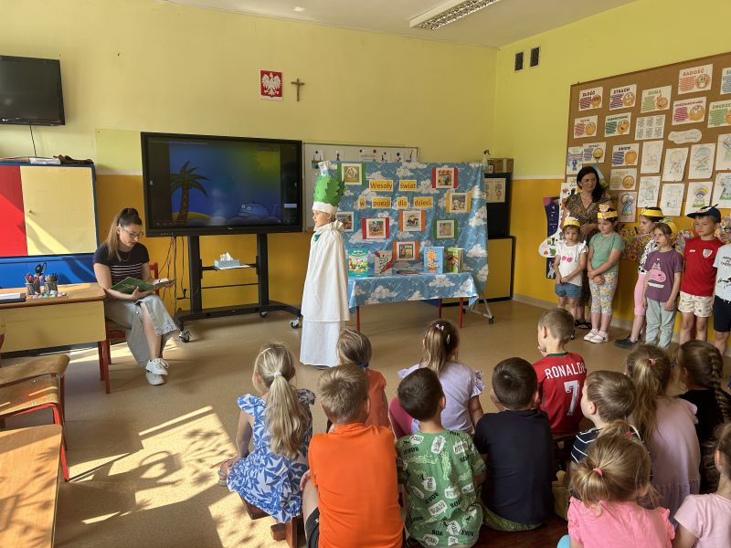 W czwartek, 5 czerwca 2025 r. na zaproszenie uczniów klasy 3b ze Szkoły Podstawowej Nr 1 w Ozimku, dzieci z grupy IV miały przyjemność odwiedzić szkołę i wziąć udział w wyjątkowym wydarzeniu pt. „Wesoły świat w poezji dla dzieci”.
