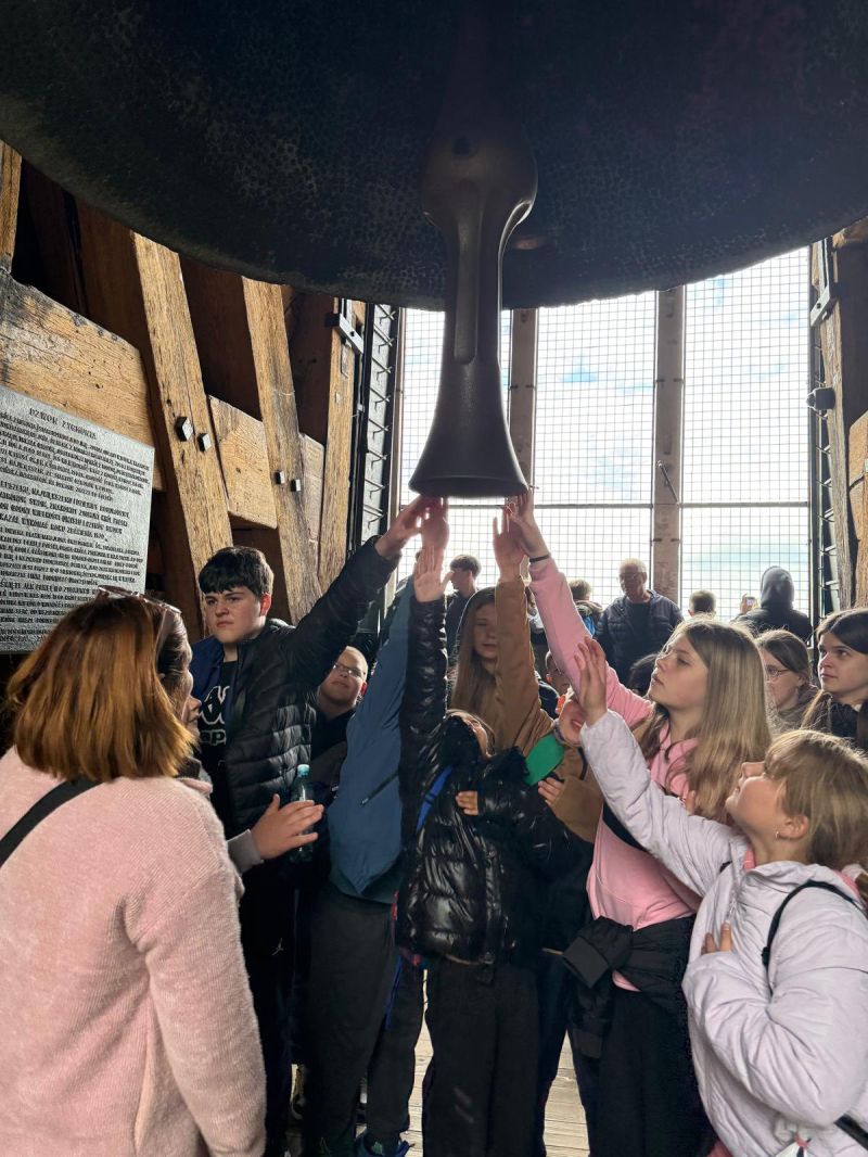 Nie obyło się bez obowiązkowego wejścia na wieżę z Dzwonem Zygmunta. Jak na turystów przystało i jak nakazuje tradycja- uderzyliśmy w niego na szczęście, na zdrowie, na miłość i być może na zakwasy w ramieniu.Teraz czekamy na milion w totka. Po wizycie u królów pomaszerowaliśmy do smoczej jamy. Smok Wawelski zionął na nas ogniem, jakby próbował nas upiec na kolację.