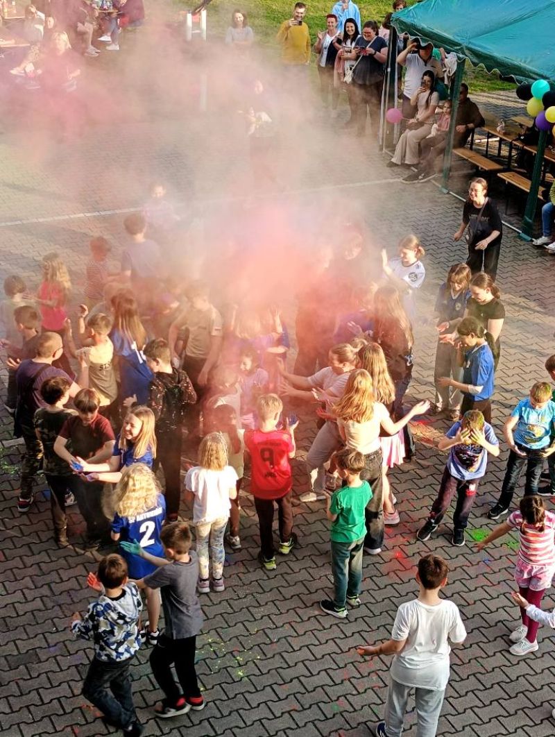 Występ mażoretek, pokaz gimnastyczny oraz piosenki i tańce w wykonaniu przedszkolaków, uczennic i uczniów wzbudziły gorący aplauz i uśmiech na twarzach publiczności. Kluczowym momentem okazało się wykonanie utworu "Tyle słońca w całym mieście" przez Hanię i Amelię z klasy 6, które odegnało na dobre wszystkie czarne chmury i sprawiło, iż zabawa bez przeszkód trwała aż do wieczora.