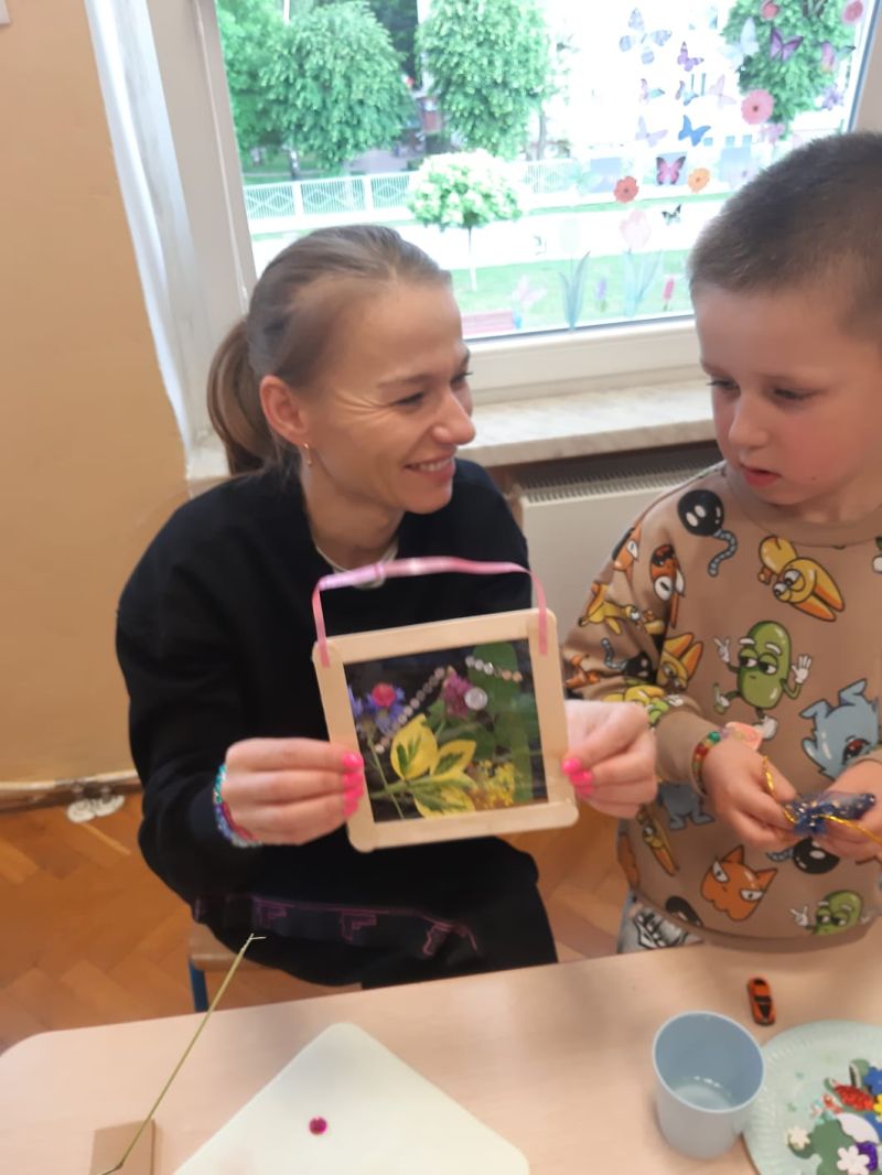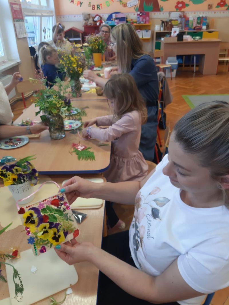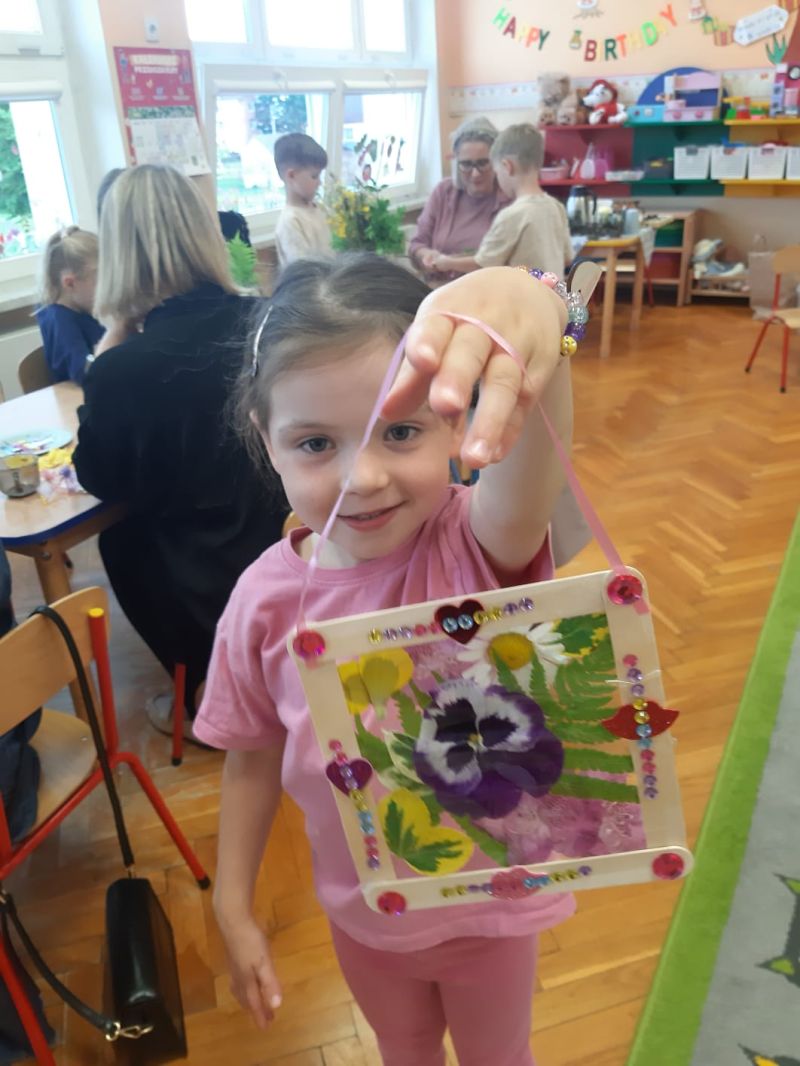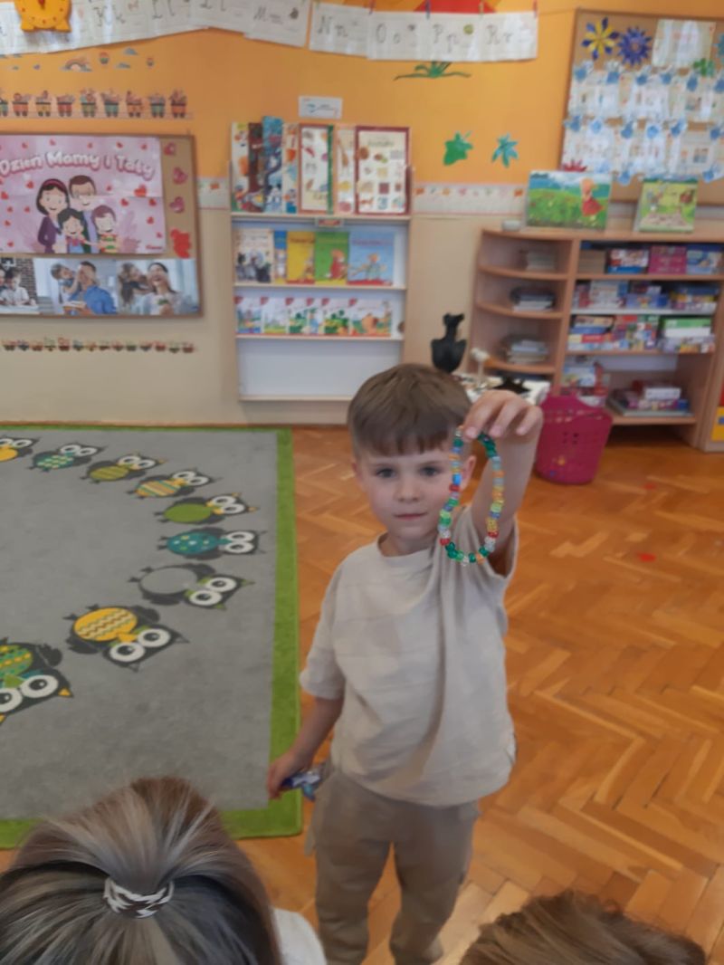 29 maja w Przedszkolu Publicznym Nr 1 w Ozimku przedszkolaki z grupy Witaminki zaprosiły swoje mamusie do przedszkola by wspólnie spędzić z nimi czas. Zaprosiliśmy również panią Annę Wcisło, która własnoręcznie wykonuje biżuterię. Nasze spotkanie rozpoczęliśmy od zabaw z mamą, później pani Ania opowiadała o swojej pracy dzieci i mamy mogły zobaczyć przepiękne kolczyki ,broszki, paski, bransoletki wykonane przez panią Anię. Uczestnicy wysłuchali opowiadania o koralikach, którego kolor symbolizował daną emocję, niestety przez wicher koraliki rozsypały się, a zadaniem dzieci było połączenie ich na nowo. Następnie dzieci wraz z mamami przy stolikach zaczęli tworzyć przepiękne bransoletki. Kolejną niespodzianką było wykonanie ramki z żywych polnych kwiatów. Zarówno bransoletki jak i ramki wyglądały przepięknie. Nasze spotkanie zakończyliśmy poczęstunkiem i pamiątkowym zdjęciami w ramce z serduszek. Na twarzach naszych przedszkolaków malował się uśmiech a to najlepsze potwierdzenie dobrej zabawy.