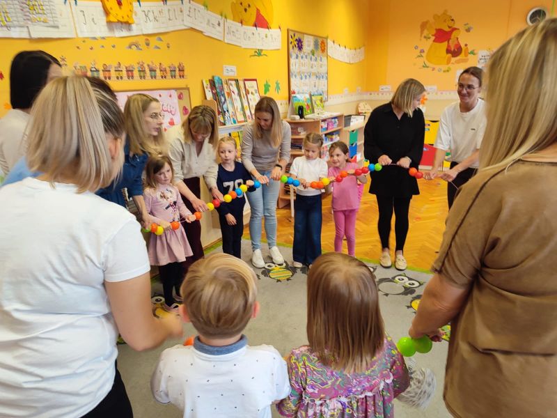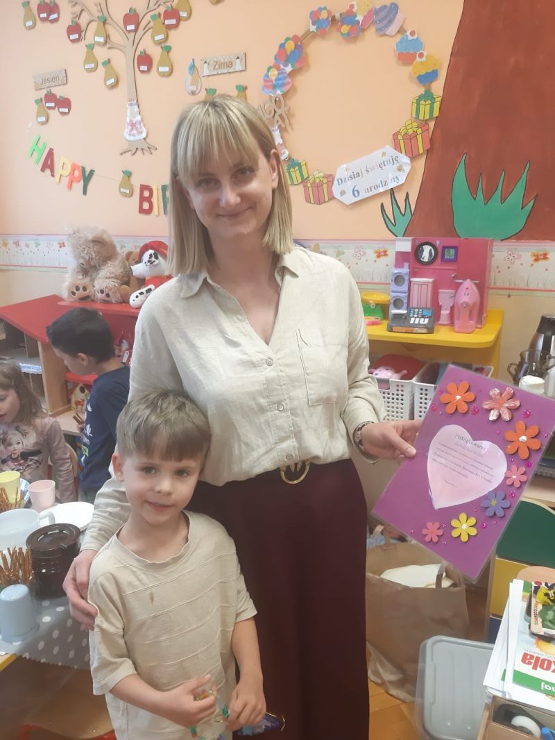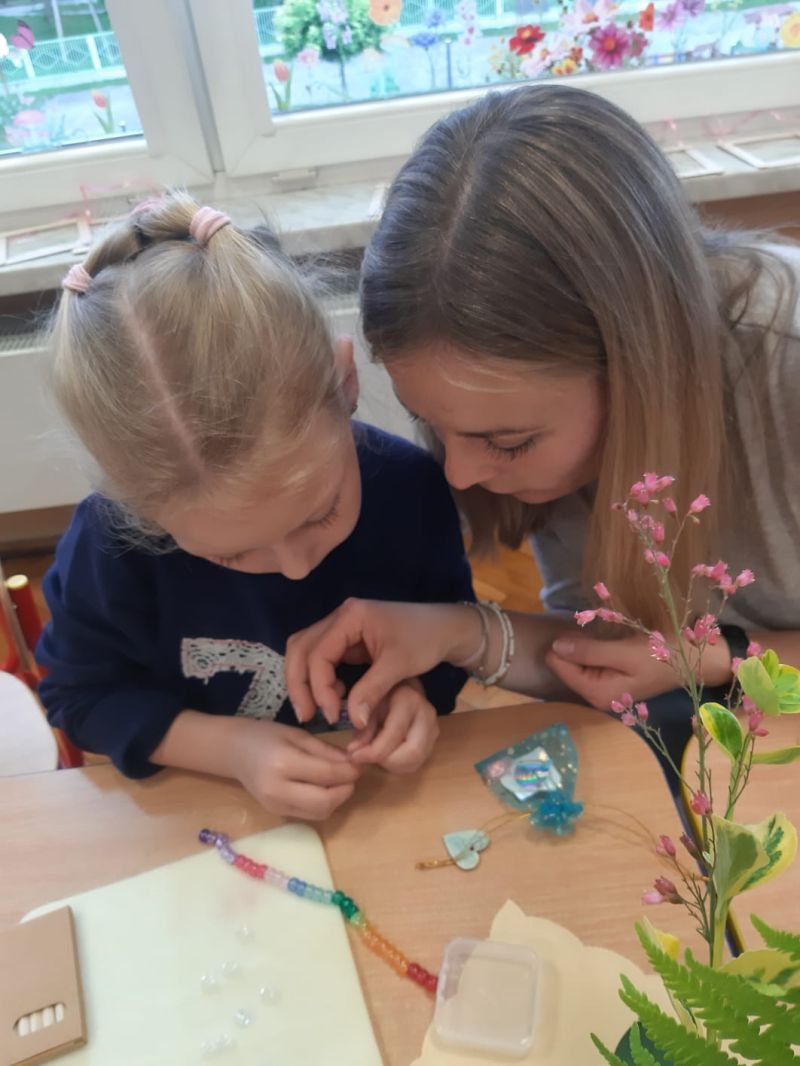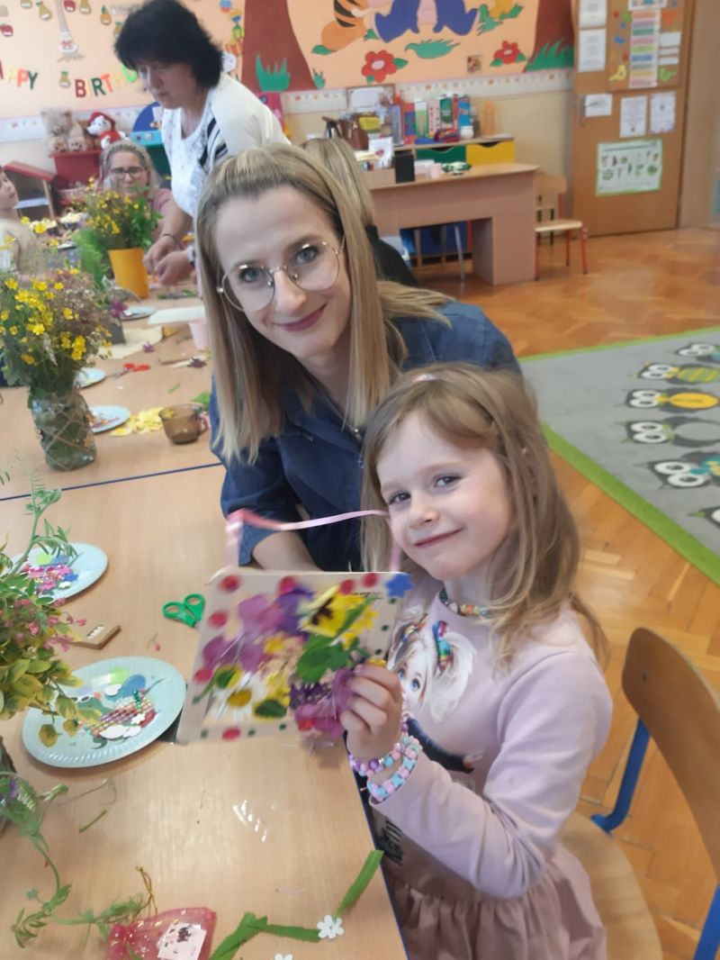 29 maja w Przedszkolu Publicznym Nr 1 w Ozimku przedszkolaki z grupy Witaminki zaprosiły swoje mamusie do przedszkola by wspólnie spędzić z nimi czas. Zaprosiliśmy również panią Annę Wcisło, która własnoręcznie wykonuje biżuterię. Nasze spotkanie rozpoczęliśmy od zabaw z mamą, później pani Ania opowiadała o swojej pracy dzieci i mamy mogły zobaczyć przepiękne kolczyki ,broszki, paski, bransoletki wykonane przez panią Anię. Uczestnicy wysłuchali opowiadania o koralikach, którego kolor symbolizował daną emocję, niestety przez wicher koraliki rozsypały się, a zadaniem dzieci było połączenie ich na nowo. Następnie dzieci wraz z mamami przy stolikach zaczęli tworzyć przepiękne bransoletki. Kolejną niespodzianką było wykonanie ramki z żywych polnych kwiatów. Zarówno bransoletki jak i ramki wyglądały przepięknie. Nasze spotkanie zakończyliśmy poczęstunkiem i pamiątkowym zdjęciami w ramce z serduszek. Na twarzach naszych przedszkolaków malował się uśmiech a to najlepsze potwierdzenie dobrej zabawy.