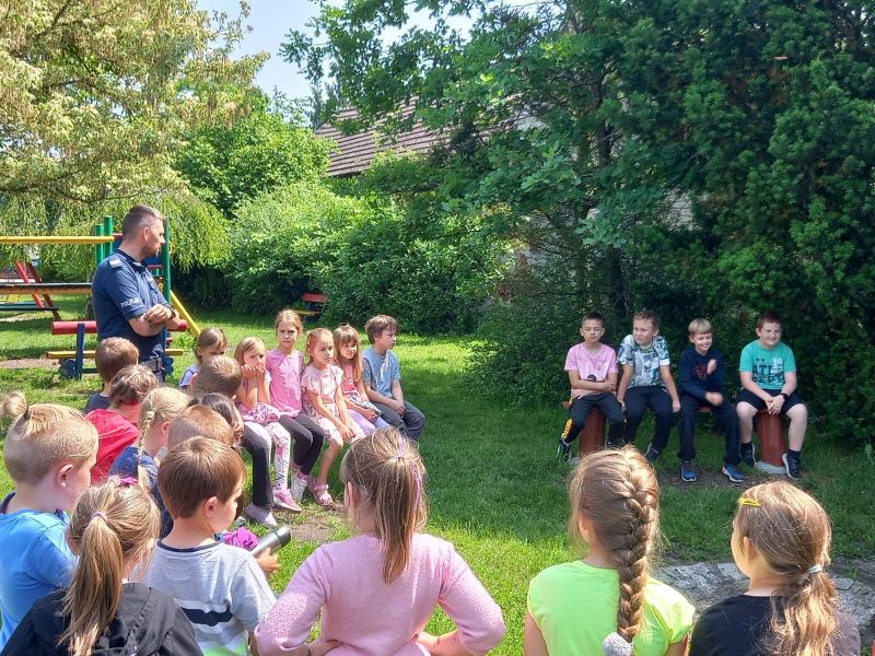 Tego dnia odbyło się także spotkanie uczniów klas 1-3 i oddziału przedszkolnego z panem policjantem - dzielnicowym Antoniowa st. sierż. Kamilem Niemczykiem, a tematem przewodnim były bezpieczne wakacje. Uczniowie przypomnieli sobie zasady właściwego zachowania nad wodą, w lesie oraz w mieście. Udzielone zostały im rady jak należy postępować w różnych sytuacjach zagrożenia, na co powinni zwrócić uwagę i co zrobić. Spotkanie zakończyło się życzeniem wszystkim uczniom udanych i bezpiecznych wakacji.