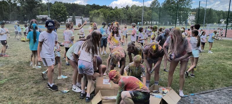 Dzieci bawiły się znakomicie przy dźwiękach muzyki i wśród chmur kolorowych proszków – śmiechu i pozytywnej energii nie było końca!