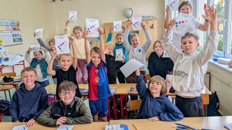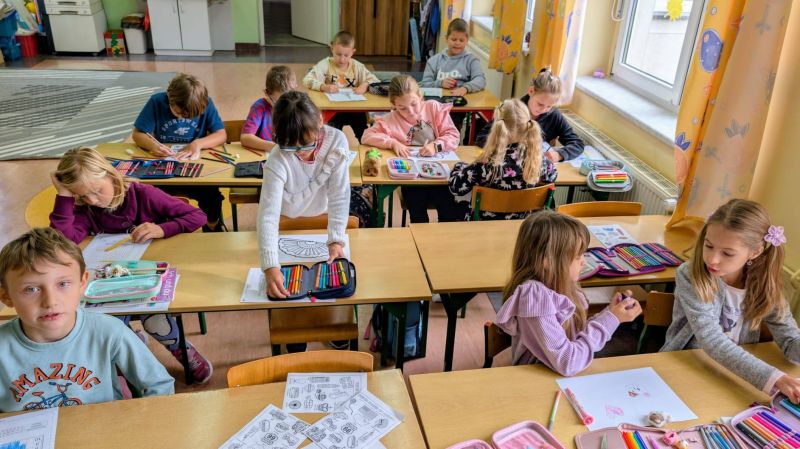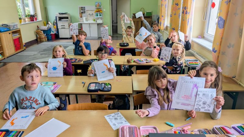 Klasy 1-3 zajęły się dziś kolorowankami i kartami pracy o tematyce językowej i z uwagą obejrzały wystąpienia swoich starszych kolegów i koleżanek.