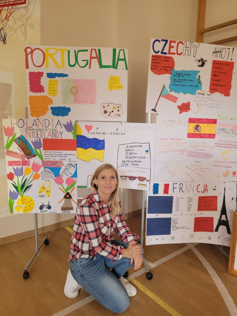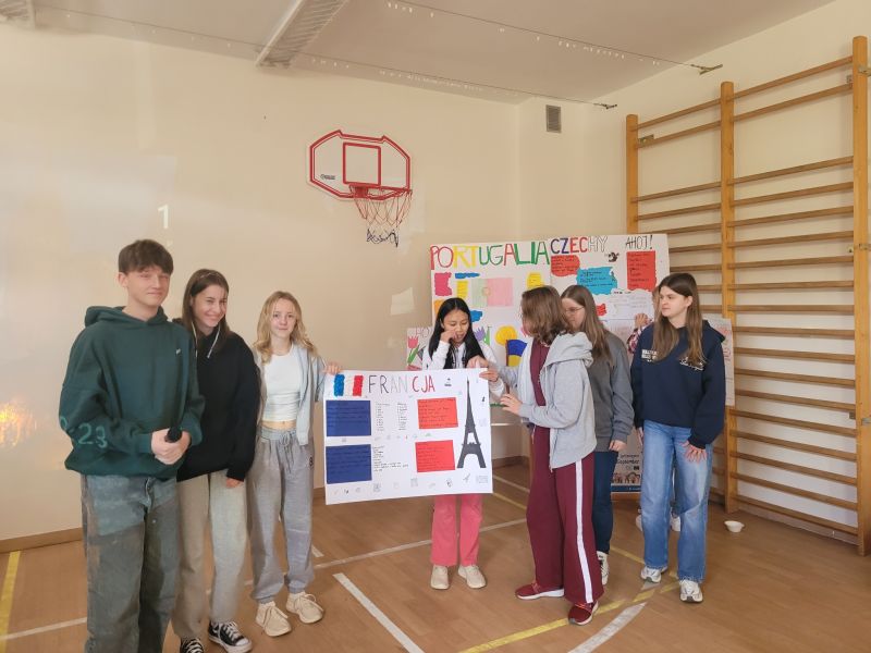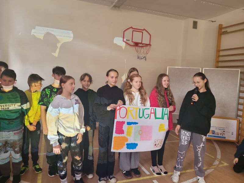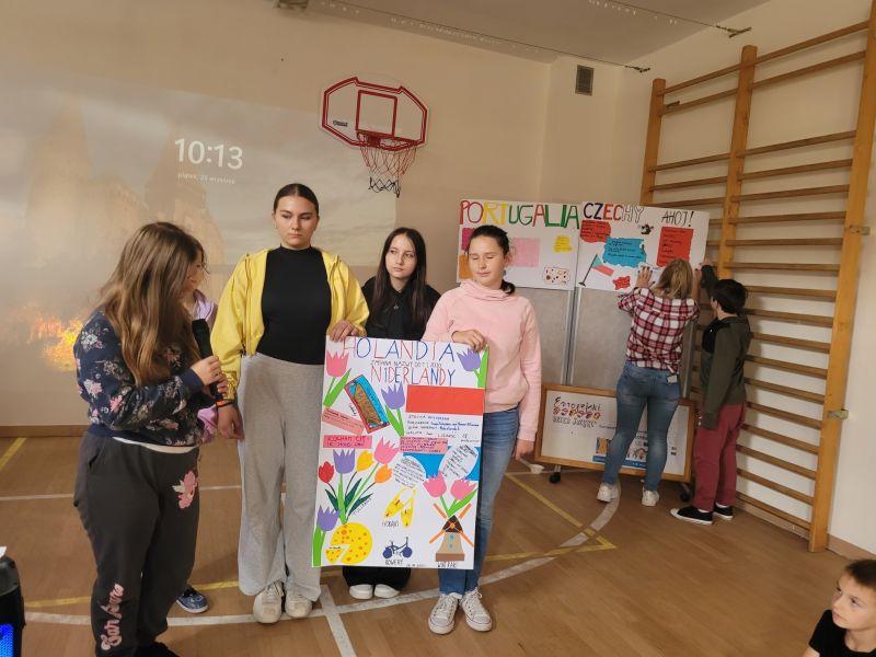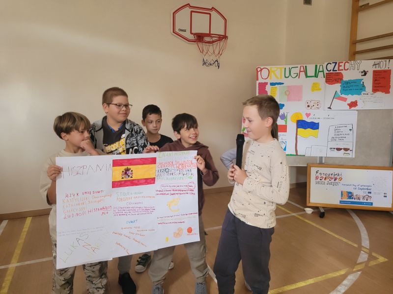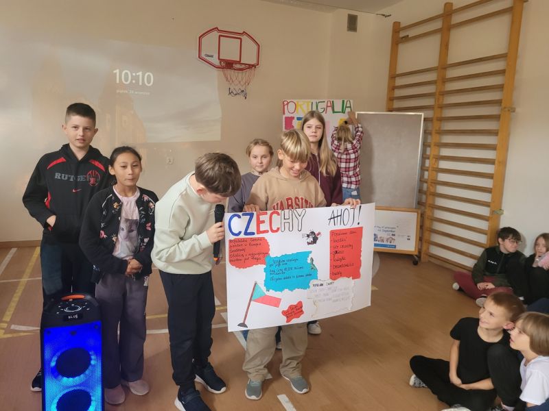 Następnie klasy 4-8 opracowały w grupach plakaty dotyczące wylosowanych krajów i przedstawiły o nich najważniejsze informacje, ciekawostki,a także przygotowały oczywiście podstawowe zwroty. Hiszpania, Portugalia, Czechy, Ukraina, Francja oraz Holandia królowały zatem w piątkowy poranek w naszej szkole.
