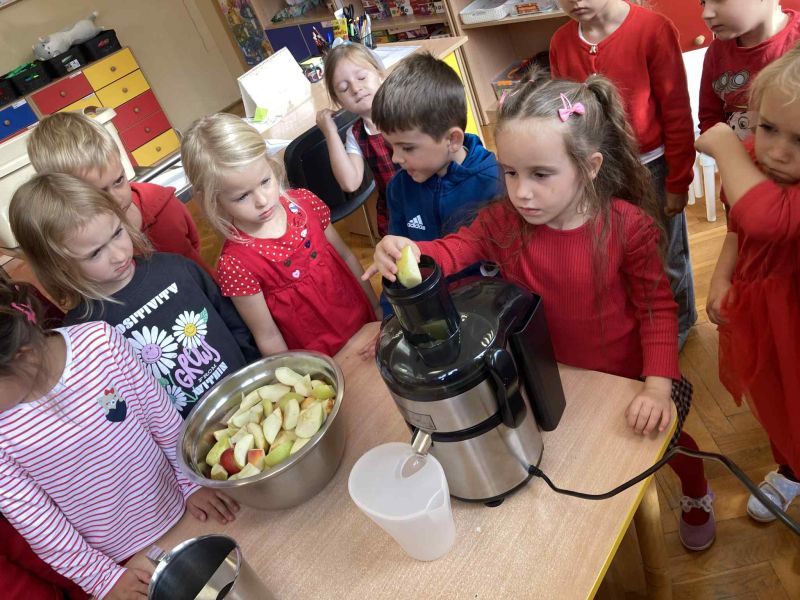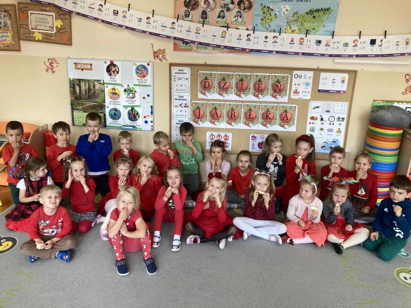 Światowy dzień jabłka przypada 28 września, jednak w Przedszkolu Publicznym Nr 1 w Ozimku już w piątek 26 września królował ten owoc. Jest to coroczna akcja mająca na celu zachęcenie dzieci do spożywania jabłek jako źródła cennych witamin i minerałów. Już od samego rana można było przypuszczać, że to wyjątkowy dzień, ponieważ dzieci z grupy Witaminki ubrane były na kolor czerwony. To był bardzo ciekawy dzień w przedszkolu. Dzieci wszechstronnie poszerzały wiedzę o jabłku. Poznawały różne gatunki jabłek, rozpoznawały kształt, zapach, kolor, smak. Zdobywały wiadomości na temat potraw i przetworów z jabłek. Niesamowitą atrakcją było samodzielne wyciskanie przez Tygryski jabłek i próbowanie świeżo zrobionego soku. Jagódki rozwiązywały zagadki, uczestniczyły w konkursach grupowych. Były również okazje do wykonania zadań matematycznych typu przeliczanie jabłek, porównywanie wielkości. Każda grupa wykonała pracę plastyczną przedstawiającą jabłko.Mamy nadzieję, że ten dzień zostanie w ich pamięci jako dzień zachęcania do jedzenia owoców i, że dzięki niemu dzieci będą chętniej sięgać po owoce i warzywa.