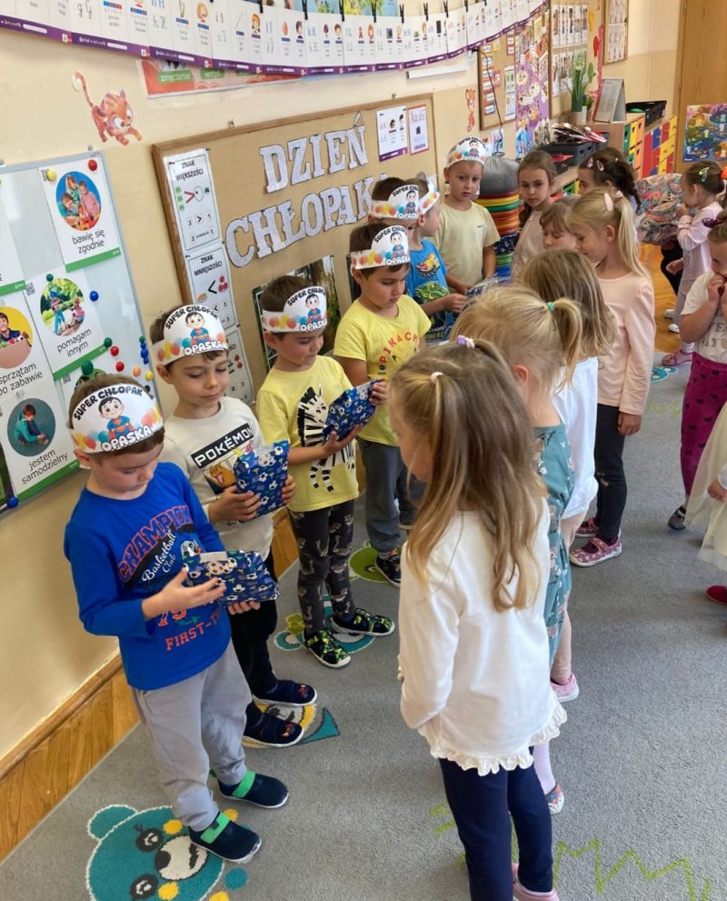 Od najmłodszych lat uczymy dzieci, aby pamiętały o ważnych uroczystościach w życiu rodziny, jak również w życiu przedszkola. Ważne jest także Święto Chłopców, które obchodzimy 30 września jako okazję do integracji grupy, budowania życzliwej atmosfery oraz sprawiania radości chłopcom poprzez wręczanie drobnych upominków, wspólne śpiewanie piosenek organizowanie zabaw. W Przedszkolu Publicznym Nr 1 w Ozimku w tym dniu dziewczynki swoim kolegom z grupy składały życzenia, wspólnie uczestnicząc w grach, konkursach i tańcach. Oczywiście dziewczynki również zostały obdarowane słodkimi niespodziankami. Było pysznie, radośnie i fantastycznie! We wszystkich grupach był to dzień, pełen wrażeń, atrakcji, radości i dobrej zabawy.