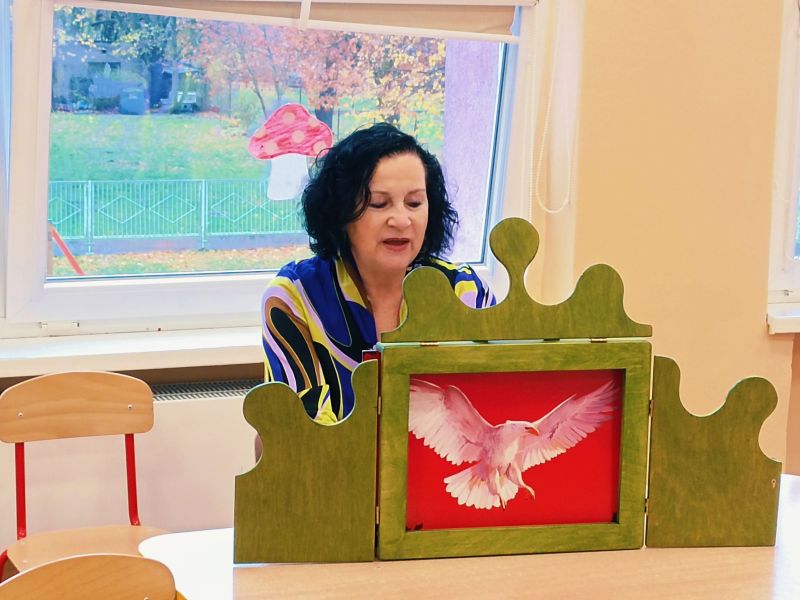 3 listopada 2025r.odwiedziła Przedszkole Publiczne Nr 1 w Ozimku , grupę Tygrysków pani Grażyna Świercz-bibliotekarka z Publicznej Szkoły Podstawowej Nr 1 w Ozimku.Za pomocą teatrzyku kamishibai przedstawiła dzieciom Legendę o powstaniu państwa polskiego –„O Lechu, Czechu i Rusie” Następnie zaprosiła przedszkolaki do quizu na temat państwa polskiego, tworzenia „Kodeksu małego patrioty” oraz odtańczenia fantazyjnego mazurka. Po zajęciach dzieci zostały nagrodzone słodkim upominkiem. Przedszkolaki wręczyły laurkę pani Grażynce w ramach podziękowań za kreatywne i bardzo pouczające zajęcia.