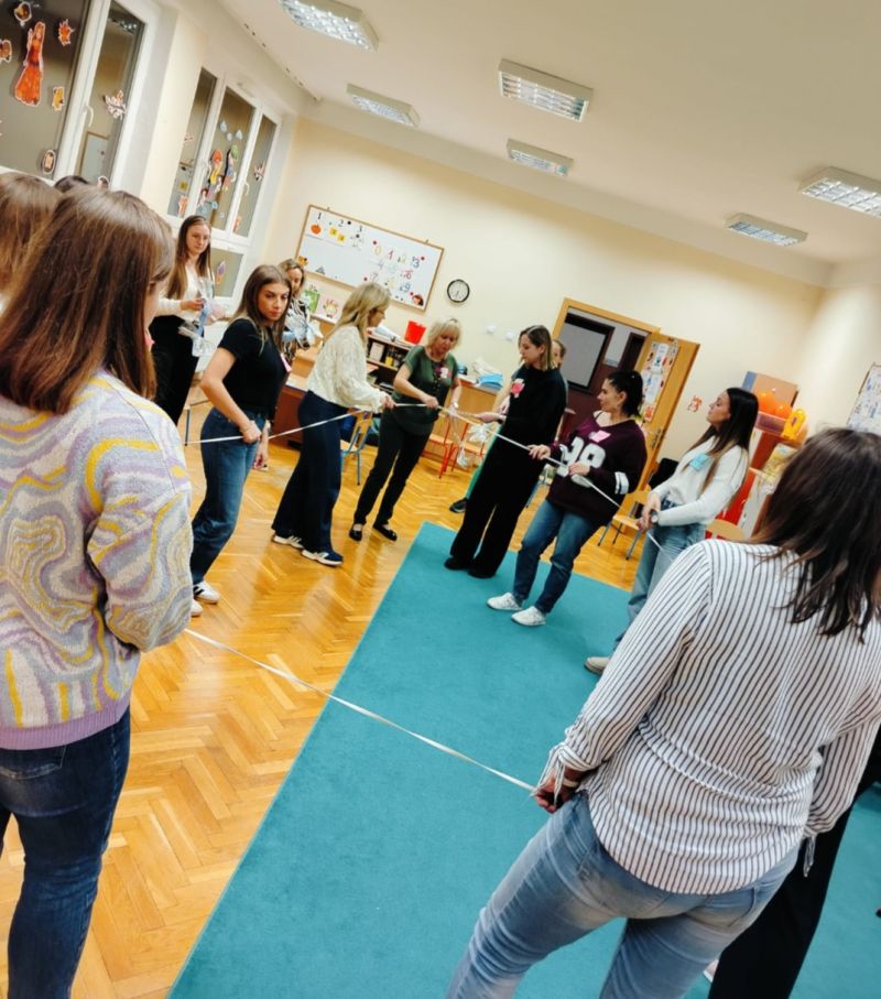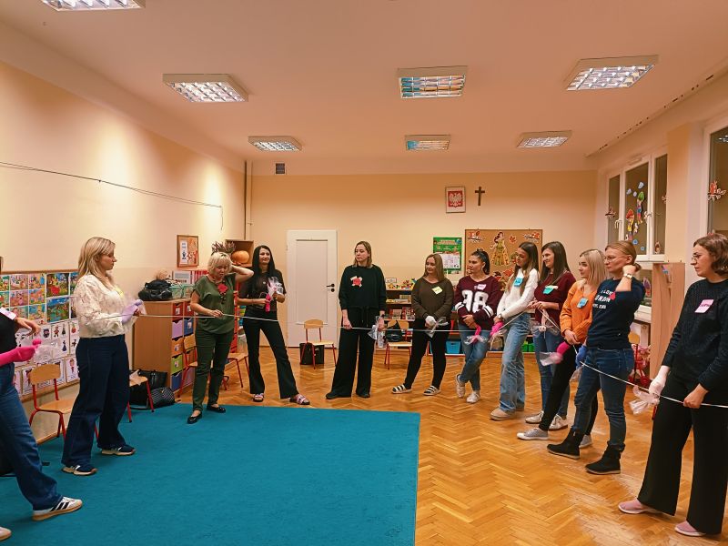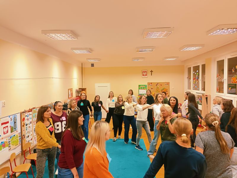 3 listopada 2025r.późnymi godzinami popołudniowymi w Przedszkolu Publicznym Nr 1 w Ozimku zostały zorganizowane przez panią dyrektor Magdalenę Dudkiewicz warsztaty metodyczne prowadzone przez panią Małgorzatę Wojtkowiak z Stowarzyszenia KLANZA „Kiedy maluchy zmieniają się w zuchy” dla nauczycieli i osób pracujących z małymi dziećmi, skupiające się na wspieraniu ich adaptacji w przedszkolu. Tematyka obejmowała problemy, radości, tęsknoty dzieci i niepokoje rodziców. W trakcie warsztatów nauczyciele poznali piosenki, które naprawdę „DZIAŁAJĄ CUDA”, sprawiając dzieciom radość ze wspólnej zabawy, ucząc ich funkcjonowania wśród innych, a nauczycielowi dają większe poczucie wpływu i sprawstwa w trudnym etapie poznawania i „organizowania“ grupy. Uczestnikami warsztatów byli nauczyciele i dyrektorzy Przedszkola Publicznego Nr 1 i Przedszkola Publicznego Nr 2 z Ozimka oraz nauczyciele z Przed-szkółki z Opola. Atmosfera była bardzo radosna, a wyniesione treści oraz doświadczenia edukacyjne bardzo wartościowe, które na pewno zostaną wykorzystane w pracy nauczycieli.