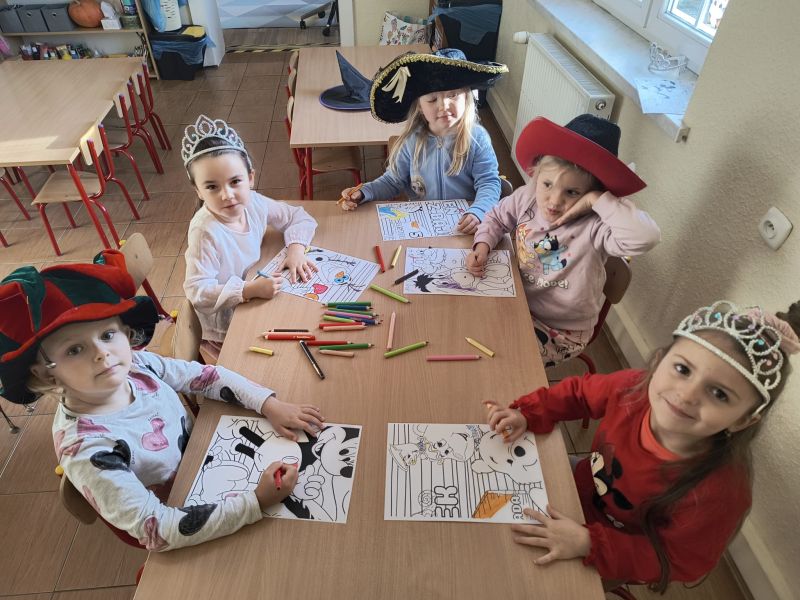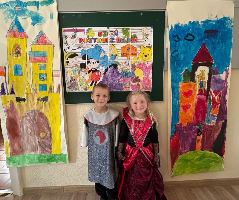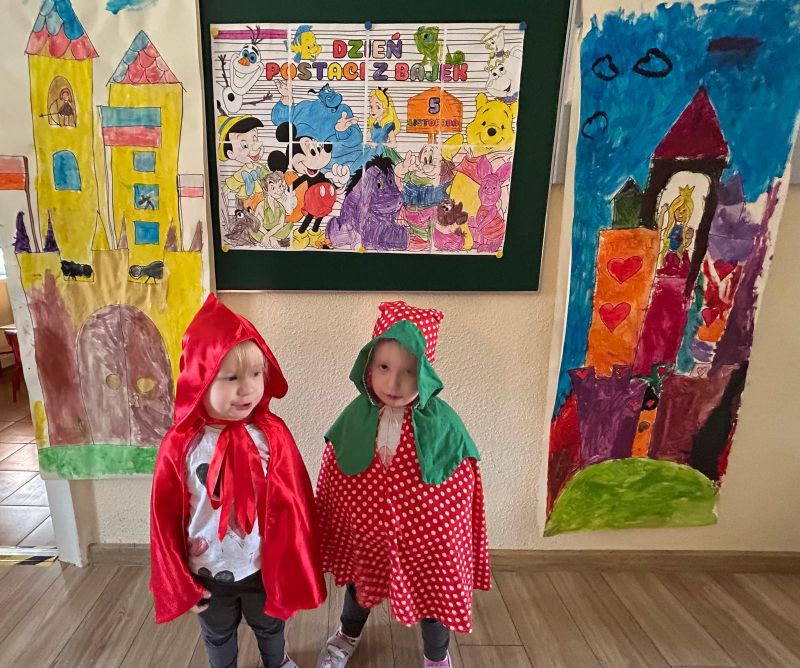 5 listopada świętowaliśmy Dzień Postaci z Bajek – dzień, który przeniósł nas wszystkich do magicznego, kolorowego świata ulubionych bohaterów! Nasze przedszkolaki wcieliły się w postacie z najpiękniejszych bajek – w sali zaroiło się od księżniczek, rycerzy, superbohaterów i bajkowych zwierzątek. Podczas wspólnej zabawy dzieci wzięły udział w grze „Zatrute jabłko”, która dostarczyła wszystkim mnóstwo radości i śmiechu. Nie zabrakło również bajkowych prac plastycznych – mali artyści tworzyli kolorowe zamki i pałace, w których mogliby zamieszkać ich ulubieni bohaterowie. To był dzień pełen magii, fantazji i uśmiechu – prawdziwa podróż do krainy baśni!