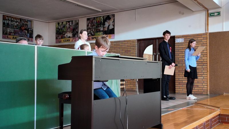 W części artystycznej można było usłyszeć wiele pięknych utworów. Helena Szczemirska z klasy 3b wykonała wzruszającą piosenkę „Co to jest niepodległość”, a Marcin Brzuchowski z klasy 3a zagrał „Rotę” na cyfrowym pianinie, wprowadzając wszystkich w podniosły nastrój.