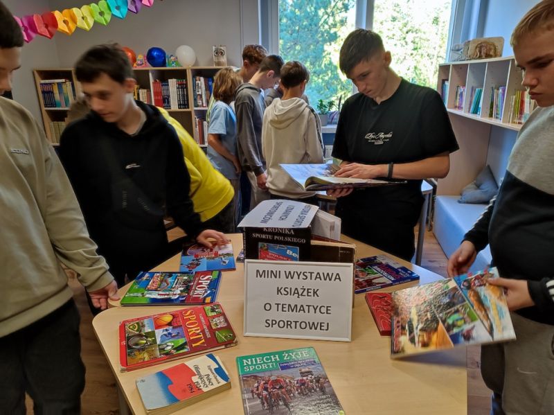 W naszej szkolnej bibliotece zakończyła się "Mini wystawa książek o tematyce sportowej". Uczniowie mogli czytać i oglądać ciekawe  książki, a potem je wypożyczyć.  Jej celem było zainteresowanie uczniów sportem, edukacja i  promocja zdrowego stylu życia oraz  budowanie świadomości historycznej oraz kulturalnej sportu. Wystawa promowała korzyści płynące z aktywności fizycznej dla zdrowia, ukazywała bogatą historię i dziedzictwo sportu, a także zapoznawała uczniów z różnorodnością dyscyplin sportowych, ich zasadami.
