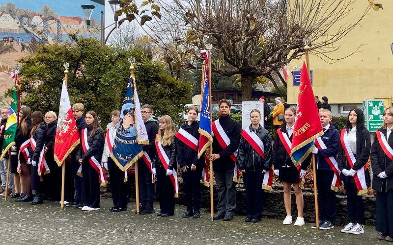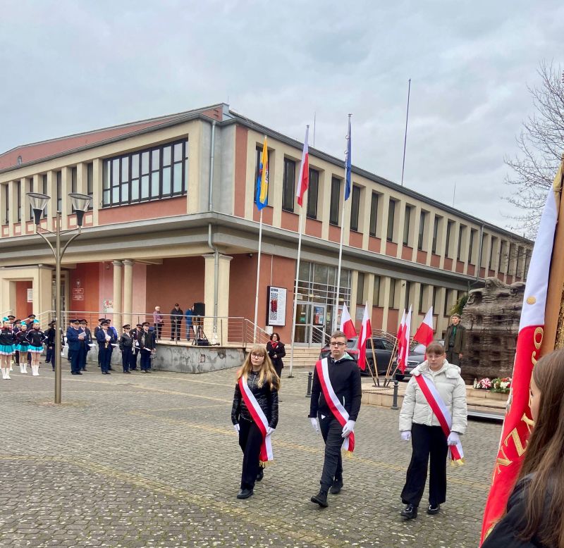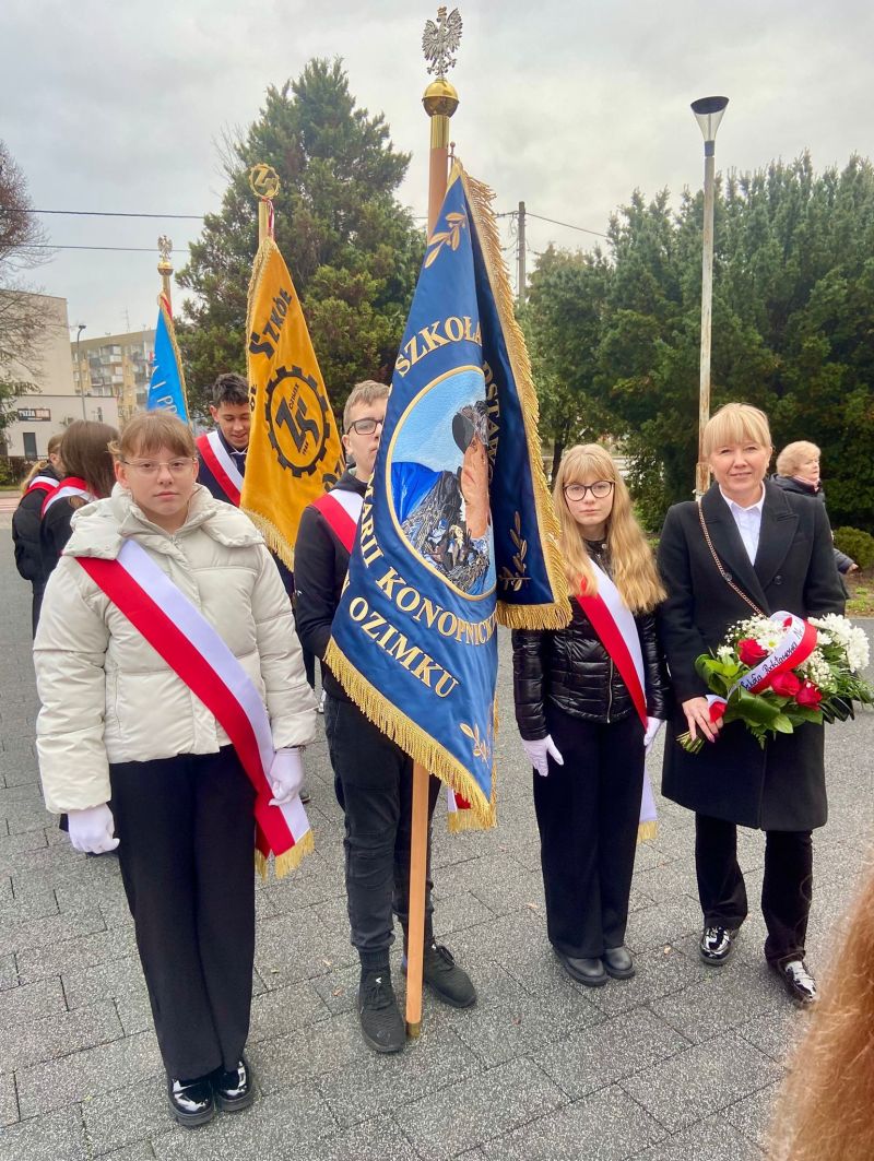 Z tej wyjątkowej okazji nasz nowy poczet sztandarowy w składzie: Paulina Klimas, Paulina Koszkul, Jakub Korzeniec uczestniczył w uroczystej Mszy Świętej w intencji Ojczyzny, a następnie w przemarszu pod Pomnik Martyrologii, gdzie złożył symboliczną wiązankę kwiatów i oddał hołd tym, którzy walczyli o wolną Polskę. Poczet sztandarowy reprezentował naszą szkołę pod opieką pani dyrektor Anny Gaszczyk oraz pani Zuzanny Szulc.