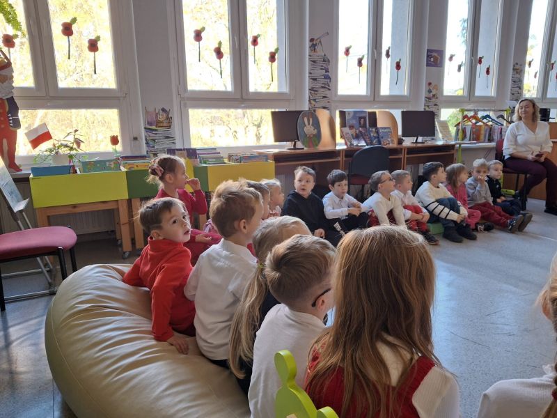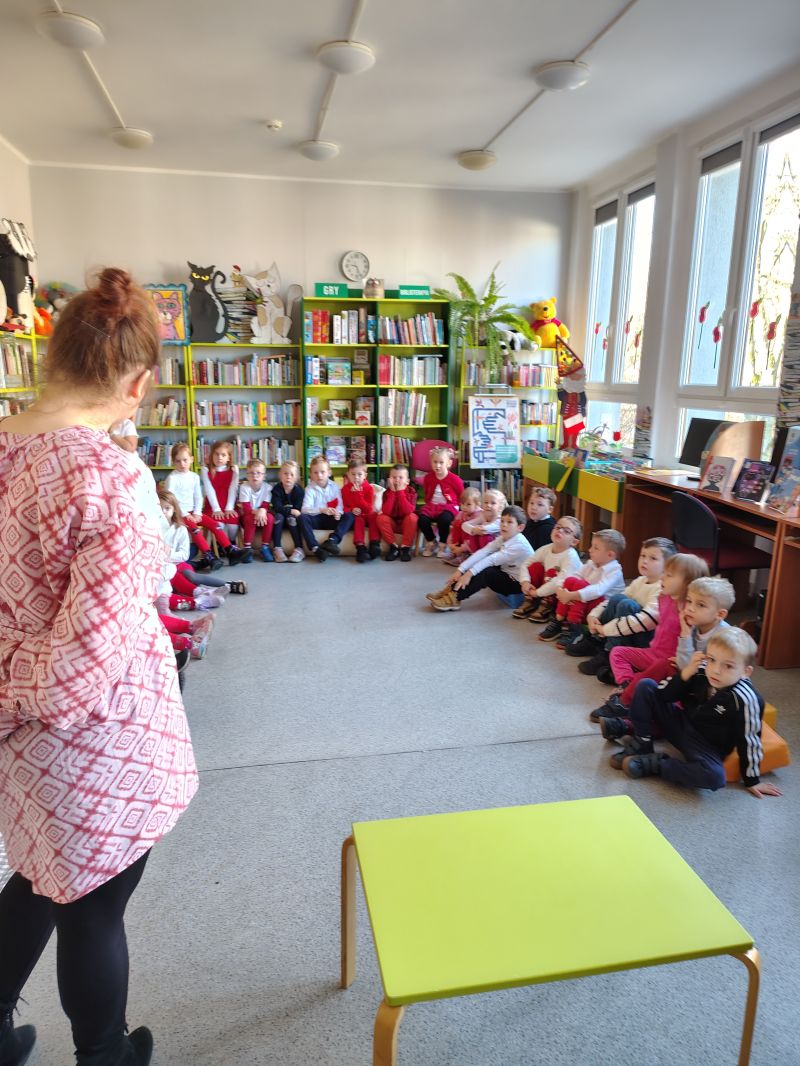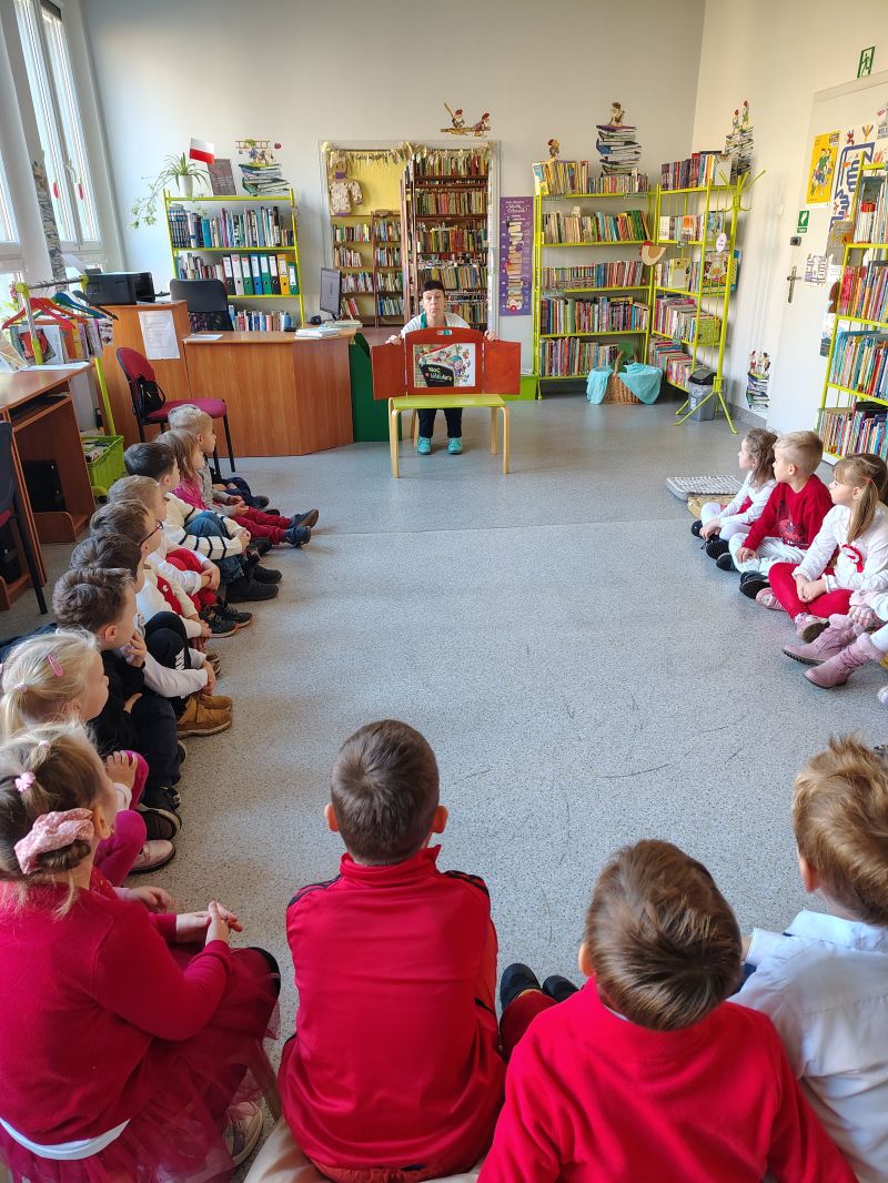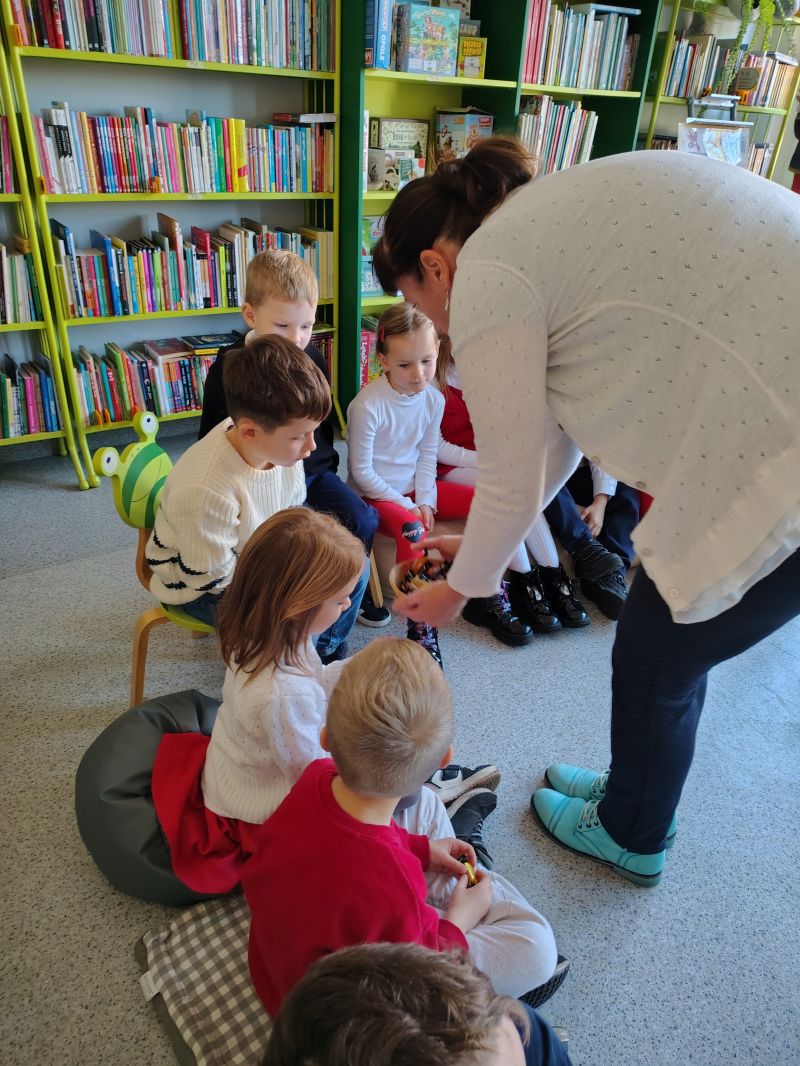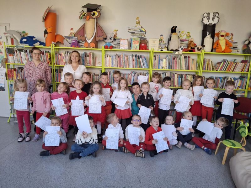 Dzieci z grupy „Jagódki” z Publicznego Przedszkola Nr 1 przeżyły niezapomnianą przygodę podczas wizyty w Miejskiej i Gminnej Bibliotece Publicznej w Ozimku. Główną atrakcją był magiczny teatrzyk kamishibai ,,Noc w bibliotece”, który przeniósł dzieci do krainy barwnych opowieści.Po spektaklu przedszkolaki zamieniły się w prawdziwych detektywów! Z zapałem rozwiązywały zadania wymagające łączenia elementów, a także sprawdzały swoją intuicję, mierząc się z zagadkami dotykowymi dotyczącymi znanych postaci z bajek. Nie zabrakło również emocjonującego poszukiwania wskazówek ukrytych w zakamarkach biblioteki.Na zakończenie spotkania, pełne wrażeń „Jagódki” serdecznie podziękowały Paniom bibliotekarkom za wspaniałe przyjęcie i możliwość zabawy. Miła atmosfera została zwieńczona słodkim poczęstunkiem oraz pamiątkowym zdjęciem grupowym, które na długo przypominać będzie o tej literackiej przygodzie.