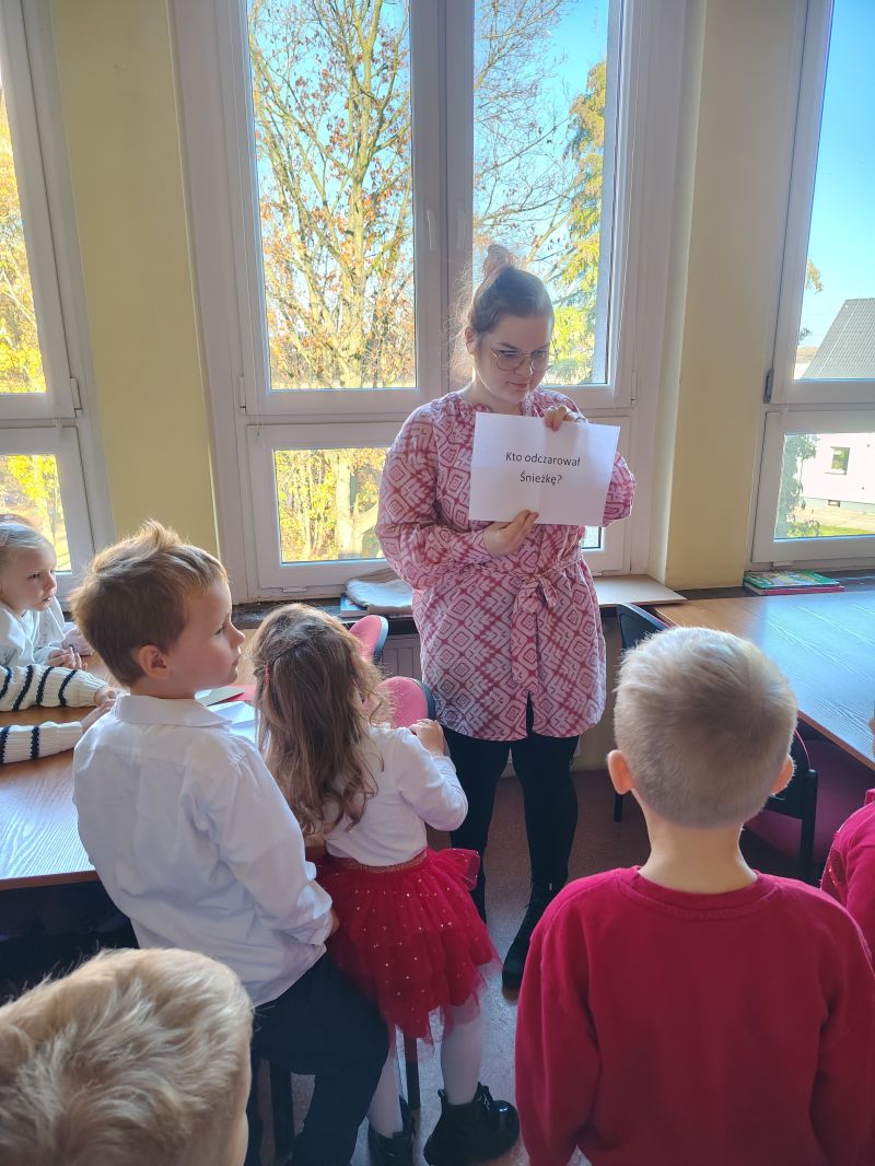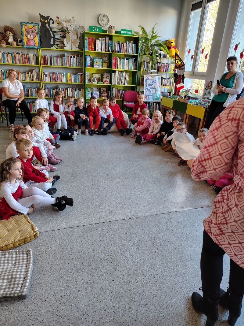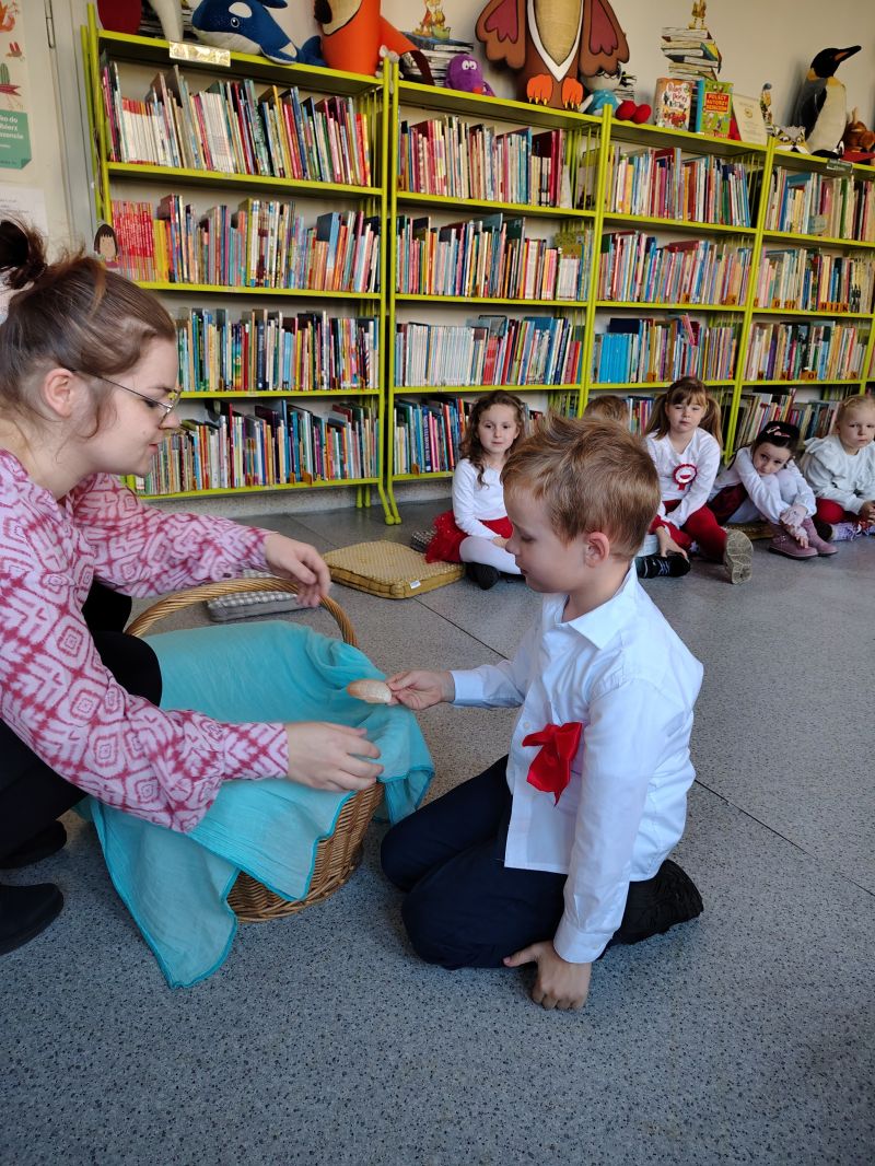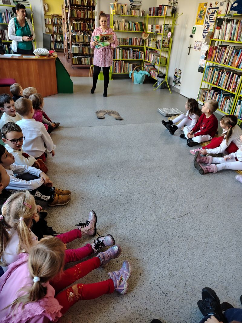 Dzieci z grupy „Jagódki” z Publicznego Przedszkola Nr 1 przeżyły niezapomnianą przygodę podczas wizyty w Miejskiej i Gminnej Bibliotece Publicznej w Ozimku. Główną atrakcją był magiczny teatrzyk kamishibai ,,Noc w bibliotece”, który przeniósł dzieci do krainy barwnych opowieści.Po spektaklu przedszkolaki zamieniły się w prawdziwych detektywów! Z zapałem rozwiązywały zadania wymagające łączenia elementów, a także sprawdzały swoją intuicję, mierząc się z zagadkami dotykowymi dotyczącymi znanych postaci z bajek. Nie zabrakło również emocjonującego poszukiwania wskazówek ukrytych w zakamarkach biblioteki.Na zakończenie spotkania, pełne wrażeń „Jagódki” serdecznie podziękowały Paniom bibliotekarkom za wspaniałe przyjęcie i możliwość zabawy. Miła atmosfera została zwieńczona słodkim poczęstunkiem oraz pamiątkowym zdjęciem grupowym, które na długo przypominać będzie o tej literackiej przygodzie.