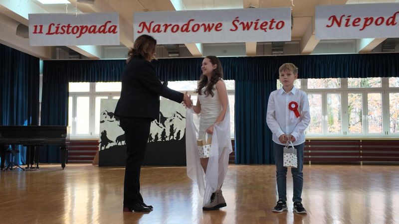 Nie zabrakło również akcentów przygotowanych przez młodszych uczniów. Helena Szczemirska z klasy 3b zaśpiewała wzruszającą piosenkę „Co to jest niepodległość”.