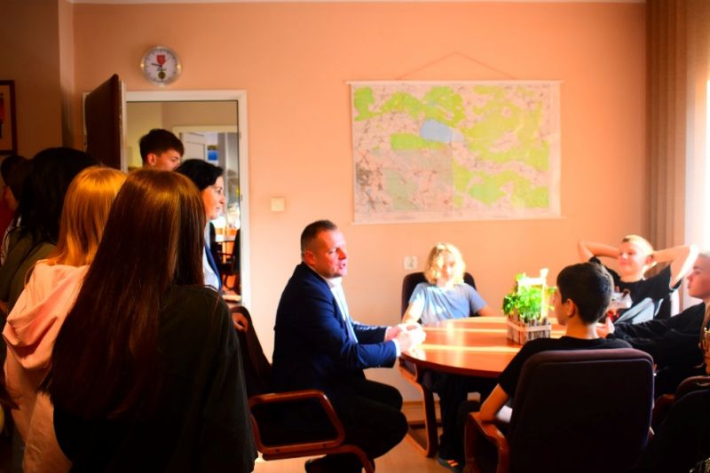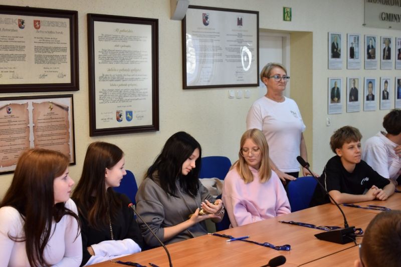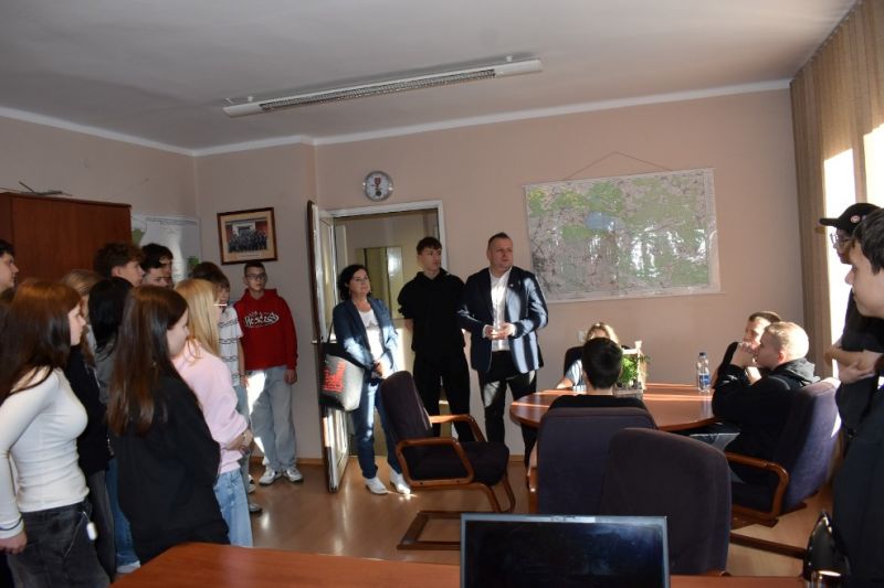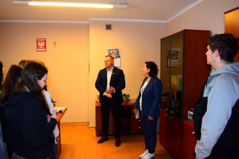 Zastępca burmistrza Marcin Widera opowiedział o swojej pracy, o zadaniach, które aktualnie są realizowane w gminie. Zaprosił też młodzież do "okrągłego stołu", gdzie uczniowie mogli poczuć się jak inwestorzy, którzy rozmawiają o z burmistrzem o inwestycjach.  Można było usiąść w fotelu burmistrza i sprawdzić, czy będzie to, miejsce, do którego chcemy dążyć w dorosłym życiu. Pożegnaliśmy wiceburmistrza Widerę oraz niezastąpioną Panią Monikę Langosz, która pełni swoją funkcję od kilku dekad, stając się niemalże symbolem znakomitego  i niezastąpionego urzędnika.