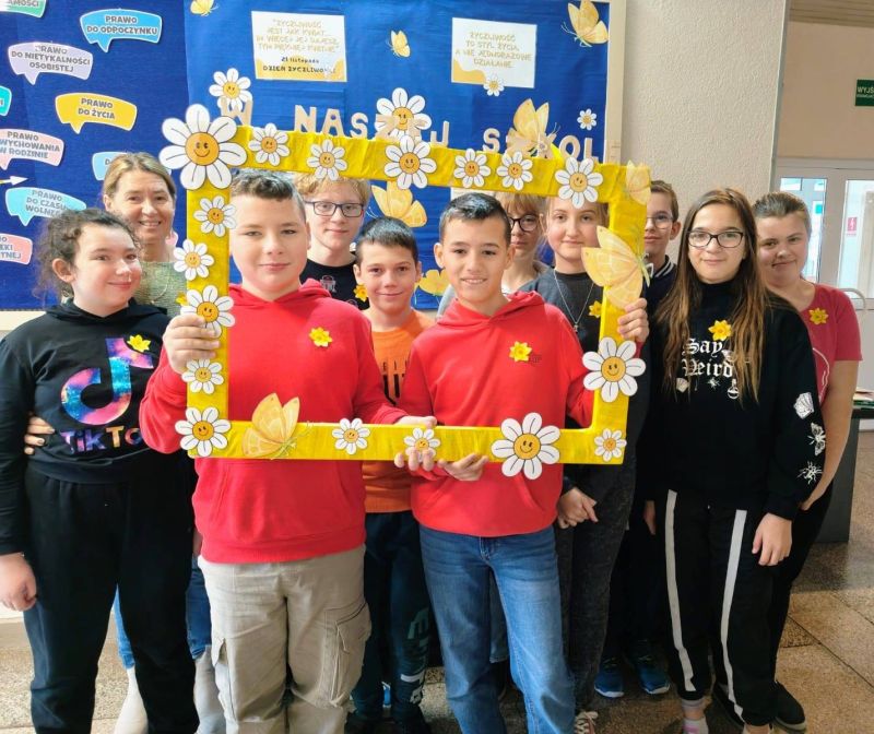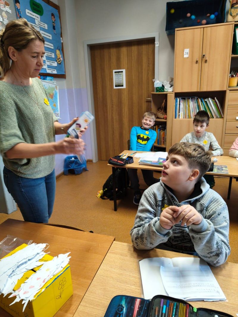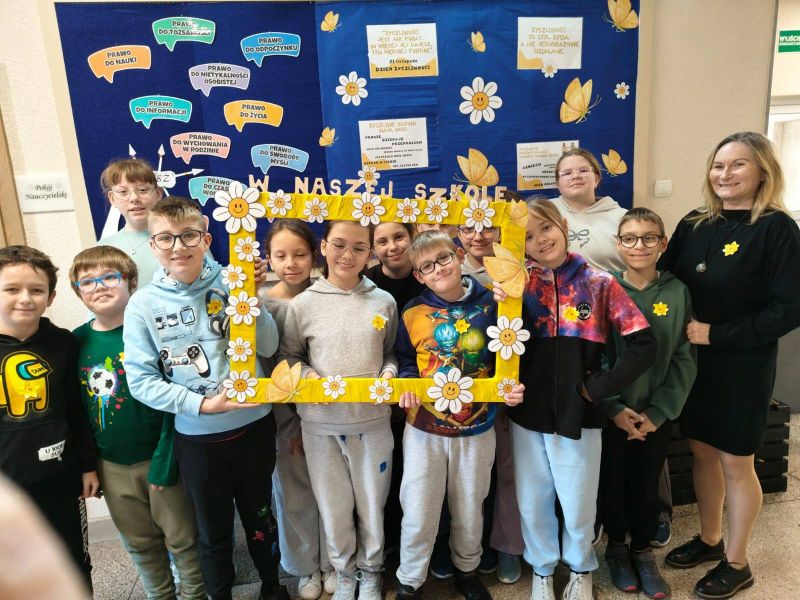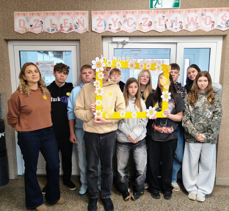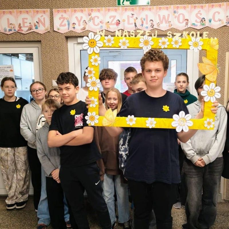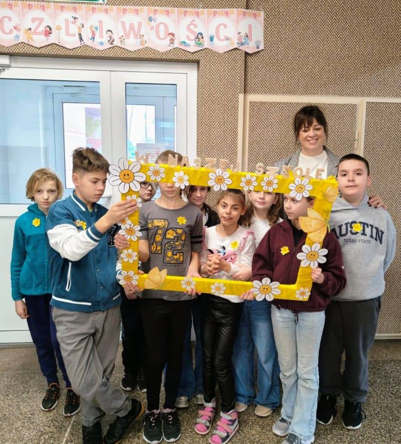 Wczorajszy dzień był pełen uśmiechów, ciepłych słów i serdecznych gestów. Uczniowie brali udział w rozmowach i zadaniach, które przypomniały, jak ważne są: życzliwość, troska, dobroć i szacunek. Rozmawialiśmy o tym, że gdy okazujemy innym uprzejmość – dobro zawsze wraca. W naszej szkole pojawiła się Skrzyneczka Życzliwości, a na dzieci czekały słodkie upominki. Każdy uczeń otrzymał piórko, na którym zapisał swoje skojarzenia ze słowem życzliwość. Żółte kwiatuszki noszone dziś przez uczniów i nauczycieli były symbolem dobra, optymizmu i uśmiechu. Dzięki wspólnym działaniom powstały wyjątkowe Skrzydła Życzliwości, które teraz zdobią nasz szkolny korytarz i tworzą piękne miejsce do zdjęć. Pamiętajmy — bądźmy życzliwi każdego dnia. To nic nie kosztuje, a potrafi zmienić naprawdę wiele. Dobro, którym się dzielimy, zawsze do nas wraca