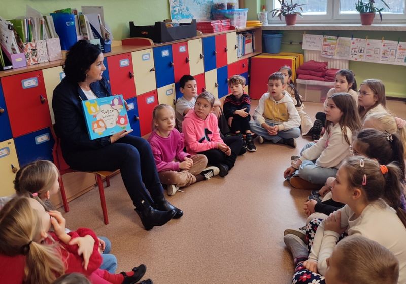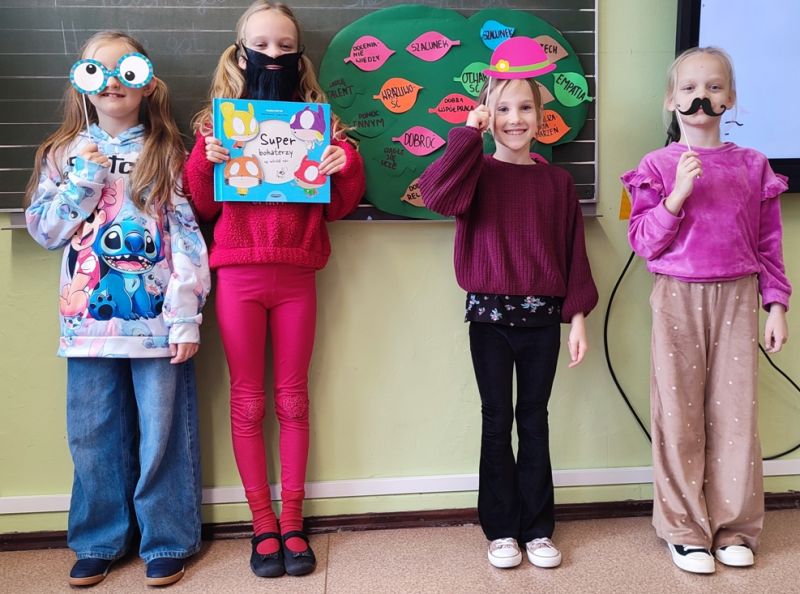Klasa druga na czwartkowej lekcji  bibliotecznej przekonała się, że Superbohaterzy są wśród nas. Pomogła przy tym świetna książka Pop-Up. Ruchome, trójwymiarowe ilustracje, rozkładające się wzdłuż i wszerz strony, wyskakujące okienka - angażowały do słuchania opowieści malutkich czytelników i pobudzały ich wyobraźnię i ciekawość. Dzieci przekonały się, że PRAWDZIWI superbohaterowie naprawdę istnieją! Są nimi ludzie, którzy uczą innych  wielu nowych rzeczy- jak ich Wychowawczyni; codziennie gotują pyszności- jak ich mamy czy babcie; mają uśmiech i życzliwość dla wszystkich - jak... Przekonały się także, że jest tyle osób, które robią niezwykłe rzeczy, nie oczekując niczego w zamian i nie chwaląc się swoimi czynami. Superbohaterowie są skromni! Na zajęciach odczytaliśmy także supermoce z "Drzewa Mocy", a dzieci podnosiły ręce, kiedy miały tę konkretną MOC. Niektórzy prawie wcale nie opuszczali ręki!