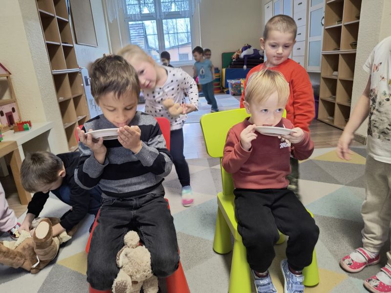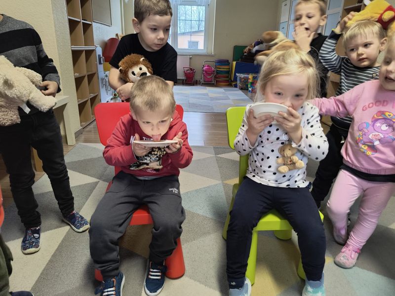Tegoroczny Dzień Pluszowego Misia obchodziliśmy wyjątkowo radośnie, bo aż przez dwa dni. Każdy z nich przyniósł naszym przedszkolakom nowe wrażenia, radość i mnóstwo uśmiechów. Pierwszego dnia, na zaproszenie Miejskiej i Gminnej Biblioteki Publicznej w Ozimku wybraliśmy się do Domu Kultury. Panie z biblioteki przywitały nas bardzo serdecznie i przygotowały wiele atrakcji. Dzieci brały udział w misiowych grach, wysłuchały opowiadania zaprezentowanego w formie kamishibai, a także z zaciekawieniem odkrywały czytane im bajki. Miały również okazję zwiedzić zarówno bibliotekę dziecięcą, jak i tę dla dorosłych, poznając ich wyjątkowe zakamarki. Na zakończenie czekała na wszystkich wspólna misiowa zabawa oraz słodki poczęstunek, który sprawił dzieciom ogromną radość. Drugiego dnia świętowaliśmy już w naszym przedszkolu. Były tańce z misiem, zabawy ruchowe, misiowe kodowanie na macie, a także degustacja pysznego miodku, który bardzo przypadł dzieciom do gustu. To były dwa cudowne dni pełne misiowego ciepła i radosnej zabawy!