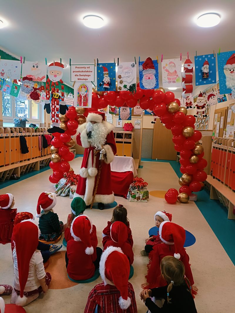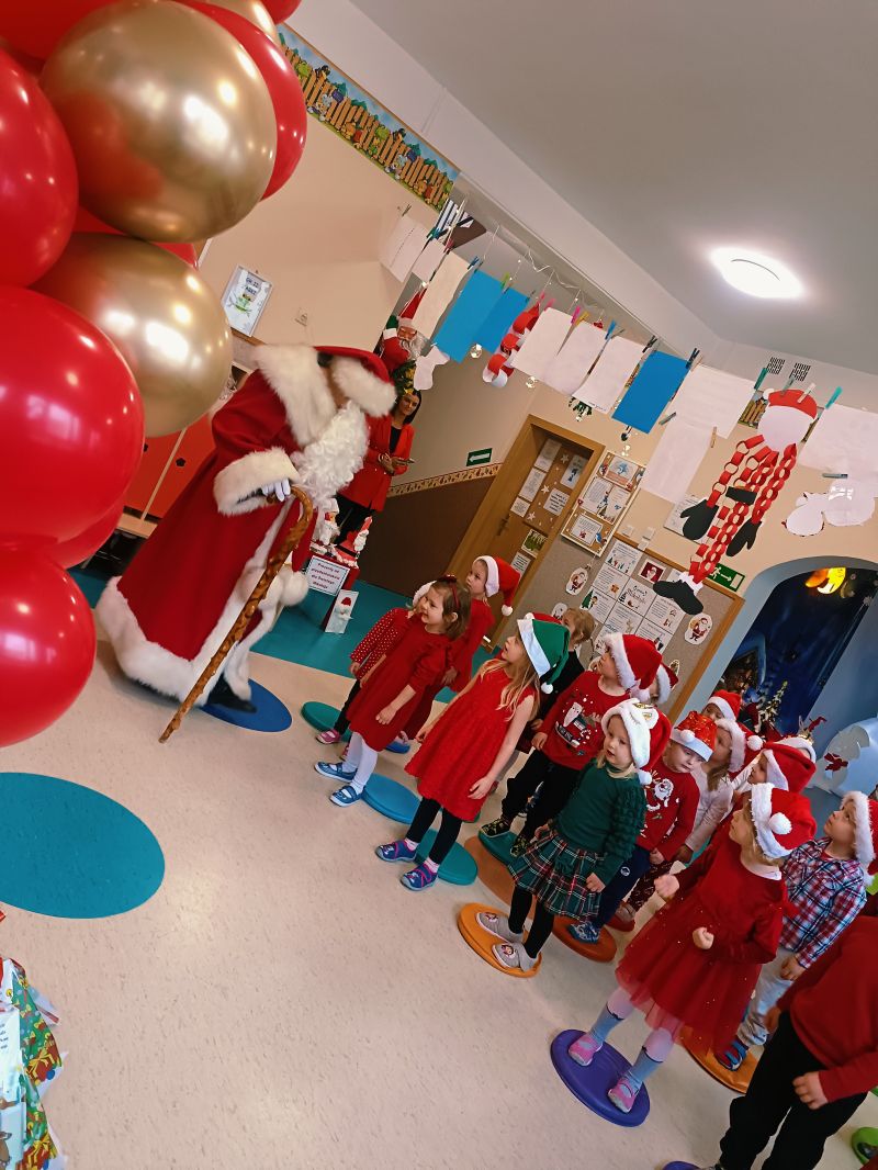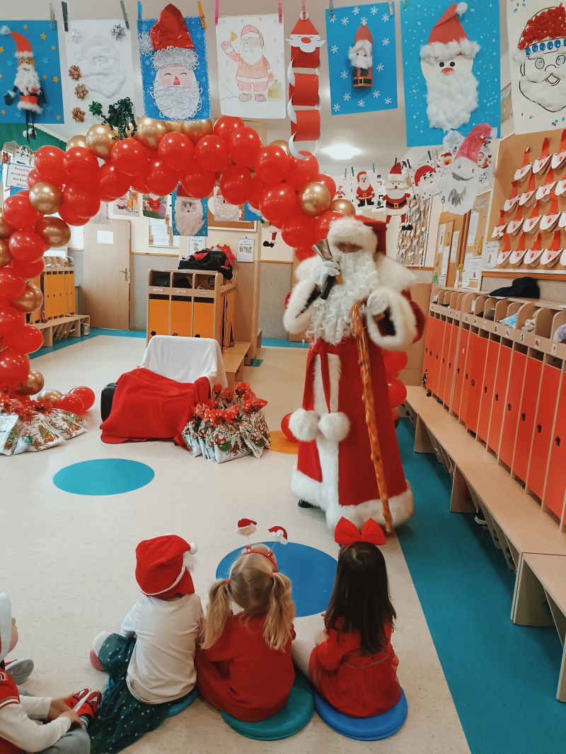 5 grudnia 2025r. Przedszkole Publiczne Nr 1 w Ozimku odwiedził bardzo miły i długo oczekiwany gość. Dzieci nadsłuchiwały dźwięku dzwonka, który słychać było już z daleka i świadczyło to o tym, że do przedszkola zbliża się nikt inny, jak Święty Mikołaj we własnej osobie. Miał czerwony strój, długą, białą brodę, dźwigał na plecach bardzo ciężki worek, a w nim prezenty. Tak, tak – w progi naszego przedszkola zawitał Mikołaj! Miał czerwony strój, długą, białą brodę, dźwigał na plecach bardzo ciężki worek, a w nim prezenty. Ten uśmiechnięty Święty odwiedził wszystkie grupy przedszkolne z osobna w towarzystwie elfów, które pomagały mu obdarowywać wspaniałymi prezentami każde dziecko. Oprócz pełnego prezentów worka św. Mikołaj przywiózł ze sobą dużo uśmiechu. Mikołaj, choć w tym dniu tak bardzo zapracowany, znalazł czas, by porozmawiać i zrobić sobie zdjęcie z każdym przedszkolakiem, a także wysłuchać pięknych piosenek,które specjalnie dla niego dzieci przygotowywały od dawna. Na twarzach dzieci malowała się wielka radość. Niespodzianką dla przedszkolaków były także przysmaczki przygotowane przez naszą kuchnię .Święty Mikołaju bardzo dziękujemy za odwiedziny i do zobaczenia za rok!