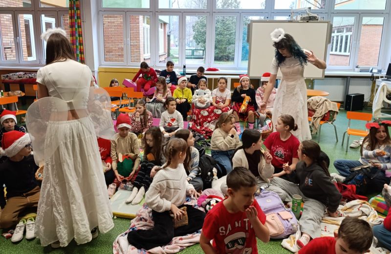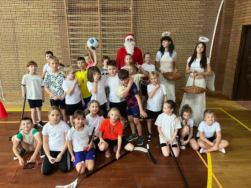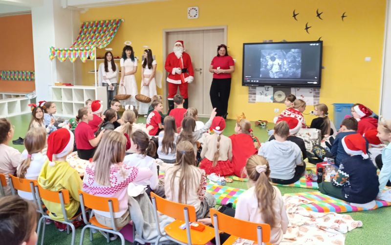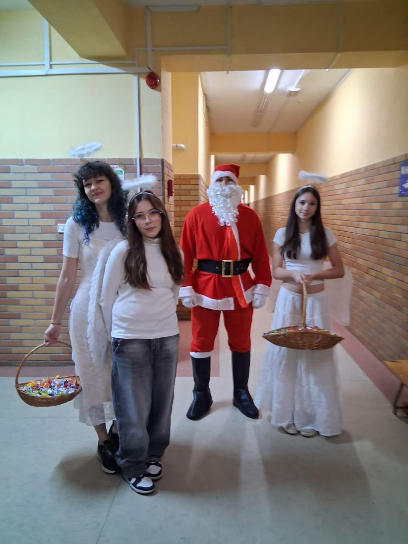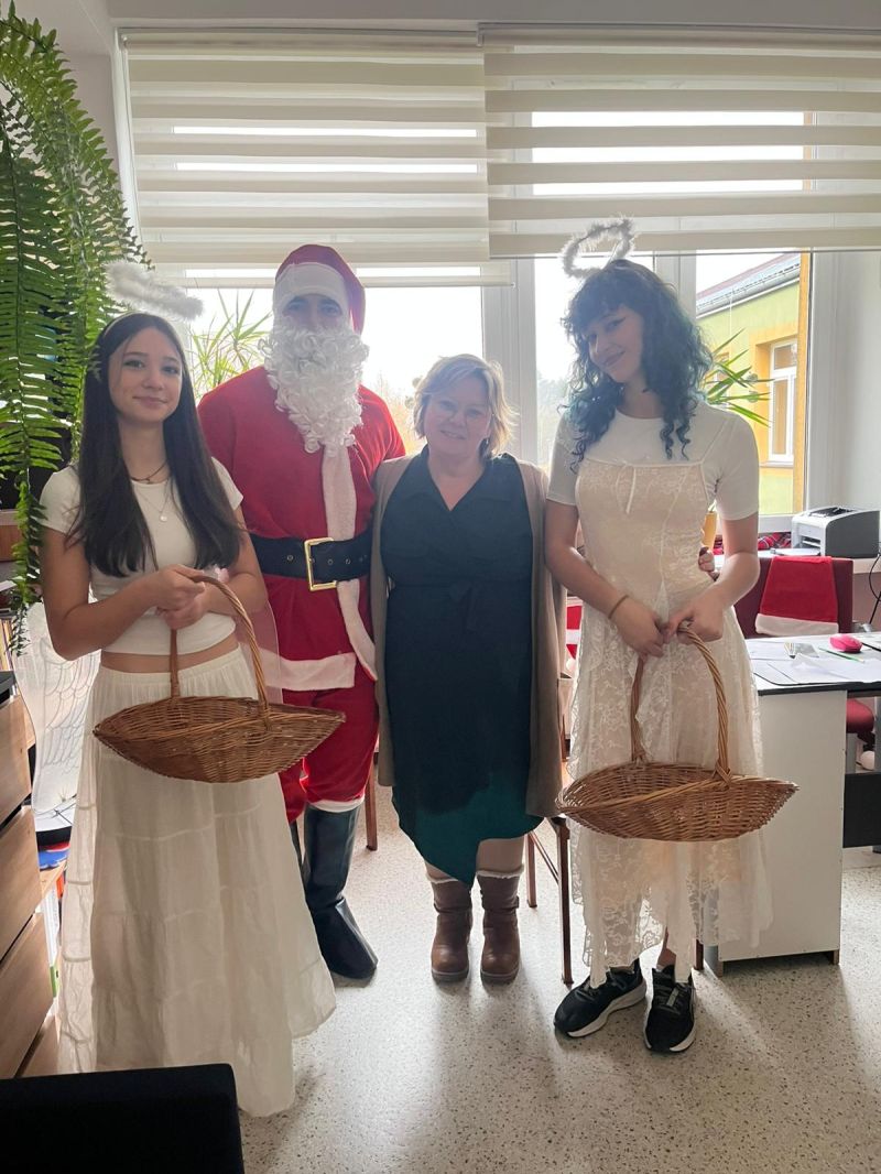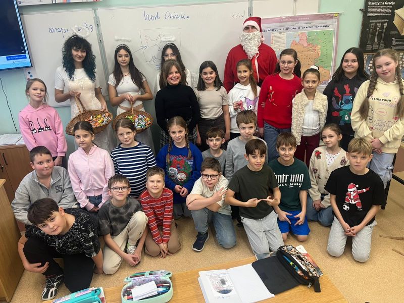 W naszej szkole pojawił się wyjątkowy gość — Święty Mikołaj, a towarzyszyły mu urocze aniołki–pomocnice.