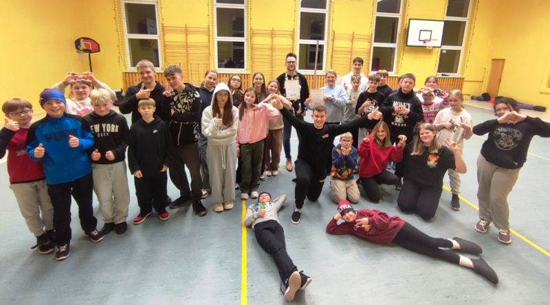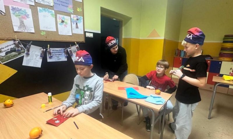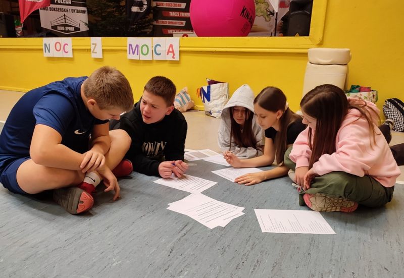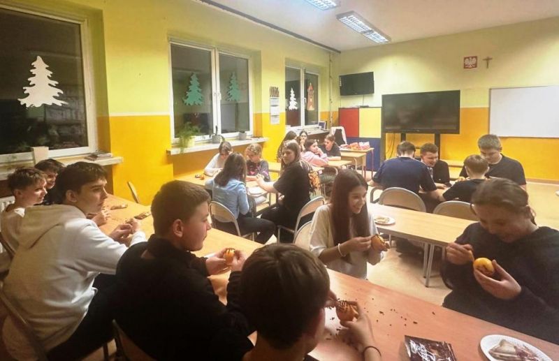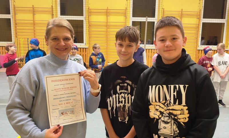 Mikołajkowo-świąteczna noc w szkole z 5 na 6 grudnia minęła błyskawicznie. Uczniowie, tradycyjnie zresztą, wcale nie chcieli iść spać. I cóż się dziwić! Atrakcji nie brakowało! Rozpoczęliśmy od warsztatów muzycznych, które poprowadził muzyk, pan Adrian Białek. Wspólne śpiewanie kolęd wprowadziło wszystkich w dobry, wesoły nastrój. Kolędowali i chłopcy, i dziewczęta, a z każdym następnym utworem było coraz przyjemniej. Przyjemnie i świątecznie pachniały też pierniki, które na kolejnych warsztatach uczniowie ozdabiali. Różnokolorowe pisaki w rękach utalentowanych dzieciaków z dwóch szkół PSP nr 1 i SP nr 2 w Ozimku sprawiły, że pierniki były nie tylko smaczne, ale także piękne. Woń goździków z pomarańczami unosiła się w powietrzu, aż wszyscy zrobili się głodni. Na kolację były pyszne tościki, przygotowane z sercem przez panią Agnieszkę Oleś i jej córkę Zosię. Potem jeszcze uczniowie wykonali kartki świąteczne, każda była inna, wszystkie były piękne. Nie zapomnieliśmy także o rozrywkach umysłowych, biblioteczno-czytelnicze zadania i zagadki wykazały dużą wiedzę o książkach wśród młodzieży, co cieszy nas szczególnie. Nie mogło zabraknąć integracyjnych zabaw sportowych. Piłka KIN okazała się strzałem w dziesiątkę, ale wesoła zabawa była też podczas bitwy na piłeczki, cały czas było dużo śmiechu i spontanicznej radości. Po zmaganiach sportowych już wreszcie przyszedł czas, by iść spać, ale to było najtrudniejsze zadanie tej nocy. Nikomu nie chciało się spać...,a rano pobudka!