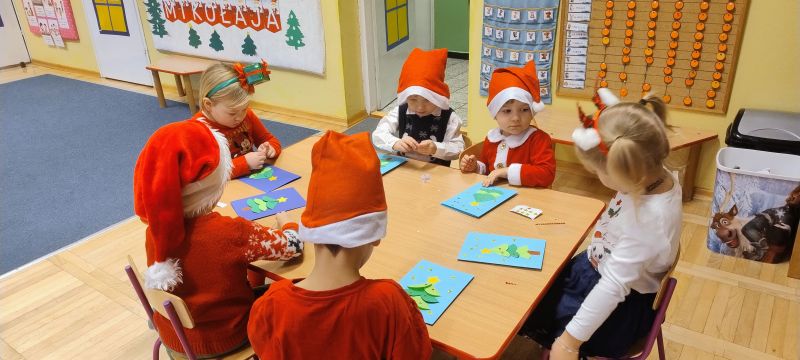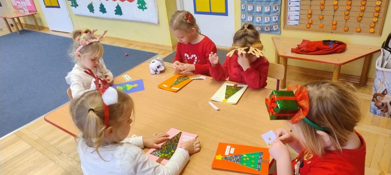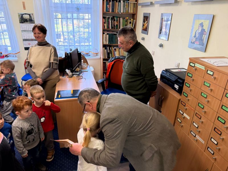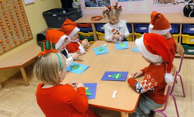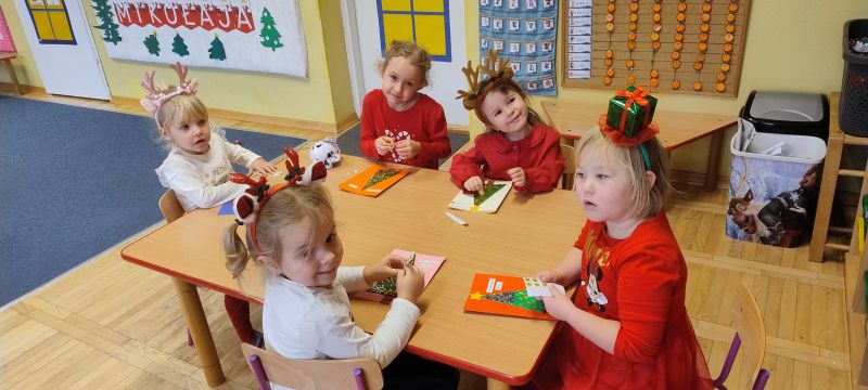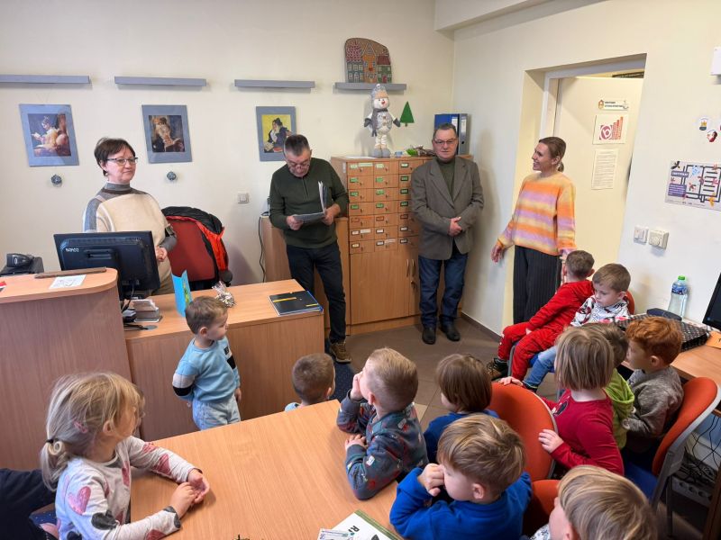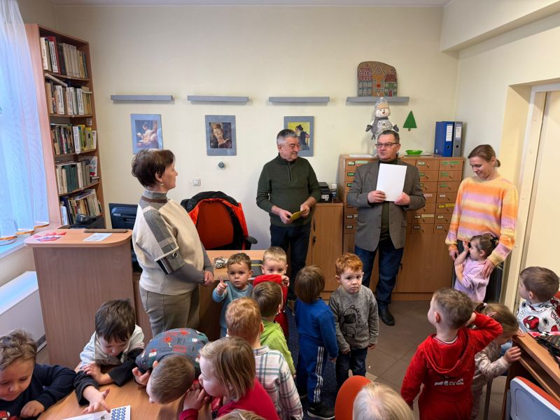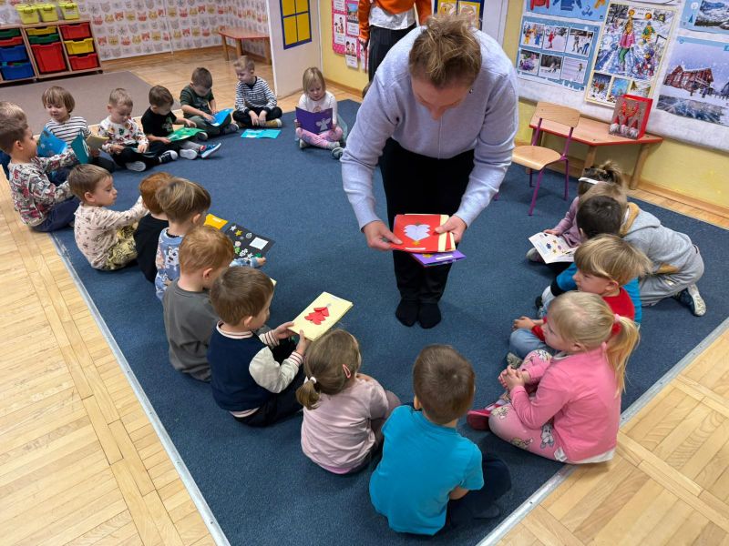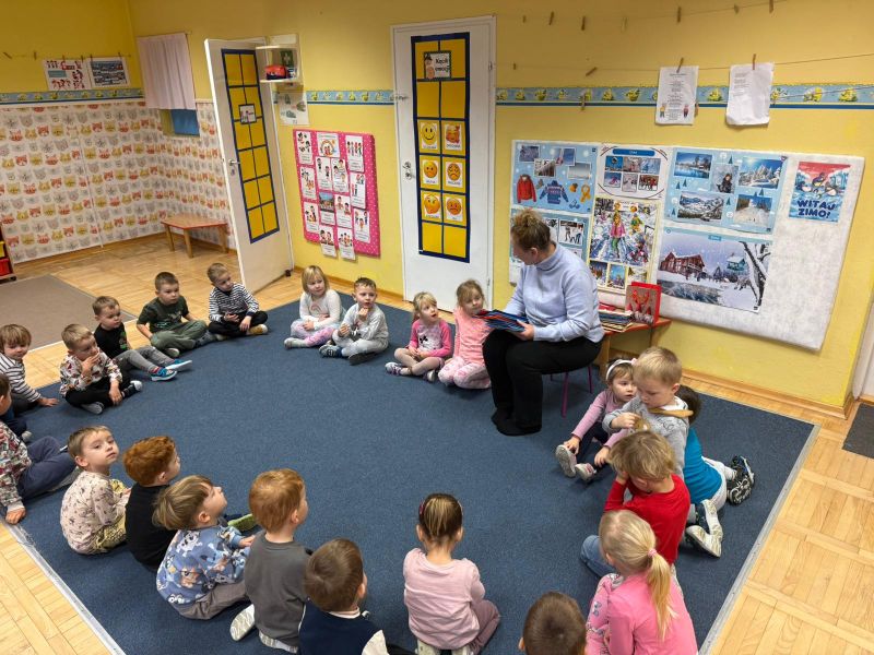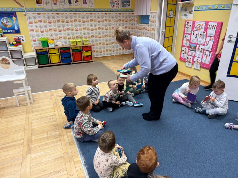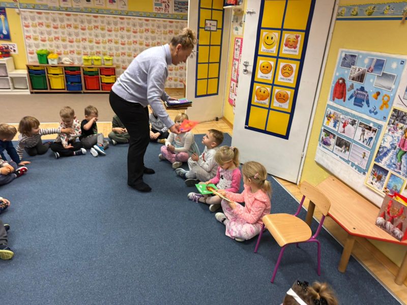W pierwszych tygodniach grudnia, przedszkolaki z Piąteczki wzięły udział w wyjątkowej akcji wymiany kartek świątecznych w ramach "Innowacji pedagogicznej - Weihnachtskartenaustausch" autorstwa Dominiki Gerlich. Celem przedsięwzięcia było rozwijanie wrażliwosci oraz budowanie relacji z lokalną społecznością i dziećmi z innego przedszkola. Przedszkolaki z wielkim zaangażowaniem przygotowywały kartki świąteczne, wkładając w nie dużo serca i radości. W ramach tej akcji 11 grudnia do naszego przedszkola przyjechała pani Ewa Wąsowicz z Zespołu Szkolono - Przedszkolnego w Grodźcu, w celu wymienienia się z naszymi dziećmi kartkami i życzeniami bożonarodzeniowymi. Sprawiło to naszym wychowankom wiele radości i było dla nich cennym doświadczeniem, uczącym życzliwości i radości płynącej z obdarowywania innych. W piątek 12 grudnia przedszkolanki odwiedziły bibliotekę w Krasiejowie. Spotkanie miało wyjątkowy charakter, ponieważ połączyło w sobie miłość do książek, świąteczną tradycję oraz piękny gest pamięci o osobach zaangażowanych w życie lokalnej społeczności. Na to spotkanie zaproszono sołtysa wsi pana Tadeusza Markulaka, przedstawiciela DFK Krasiejów pana Piotra Szubert oraz bibliotekarkę panią Aldonę Kuśmierską. Dzieci wręczyły im własnoręcznie wykonane kartki świąteczne składając jednocześnie serdeczne życzenia bożonarodzeniowe. Szczególnym momentem spotkania było czytanie opowiadania światecznego przez Pana Piotra i Panią Aldonę. Wszyscy z zainteresowaniem słuchali histroii, która wprowadziła w magiczną atmosferę zbliżających się świąt Bożego Narodzenia. Spotkanie było miłym i wzruszającym momentem, a uśmiechy na twarzach obdarowanych były najlepszym dowodem na to, jak ważne są takie gesty. Podczas wizyty w bibliotece przedszkolaki miały okazję obejrzeć bogate zbiory w bibliotece w Krasiejowie.