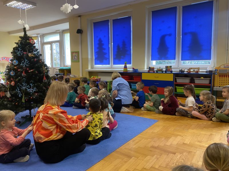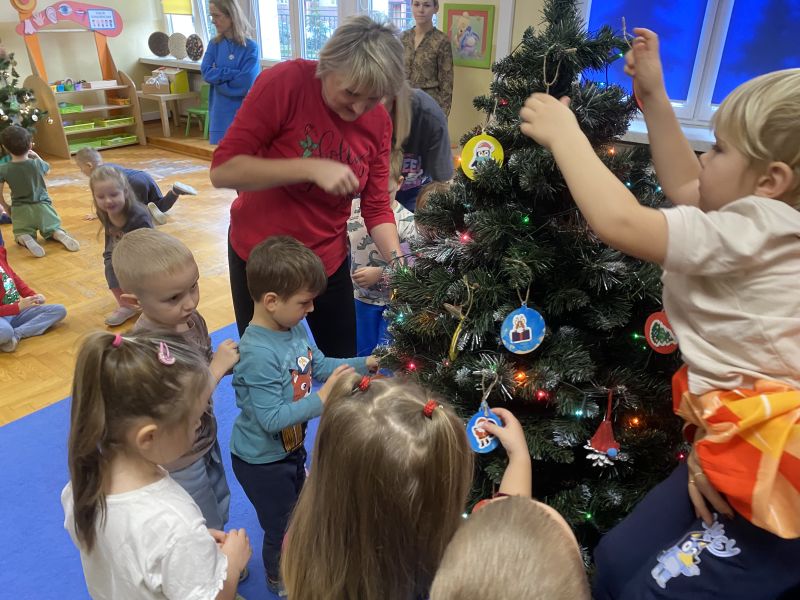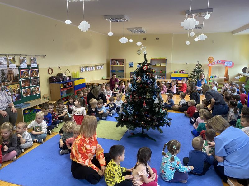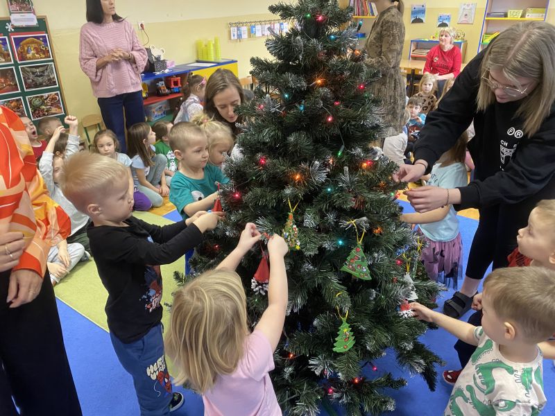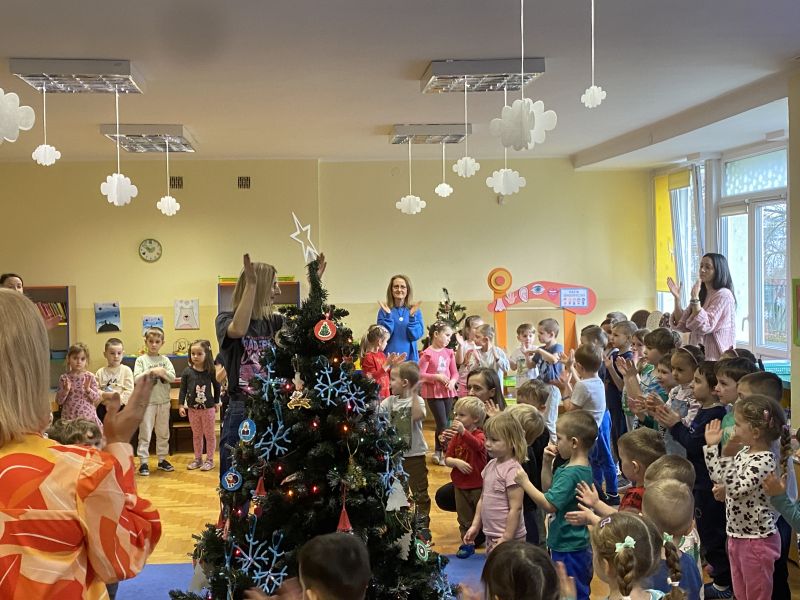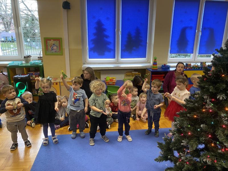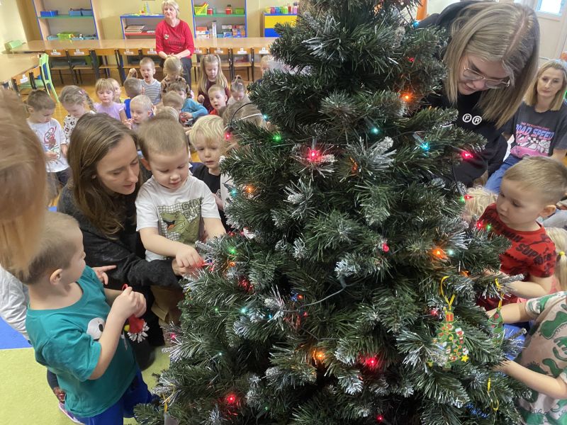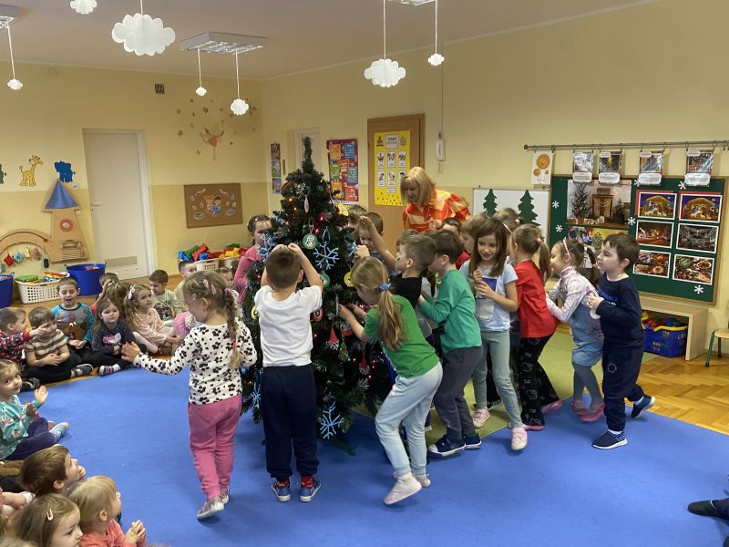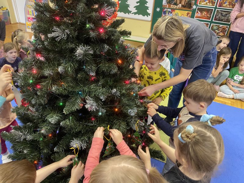 Naszą tradycją jest to, że każda grupa przedszkolna wraz ze swoim wychowawcą przygotowuje własnoręcznie ozdoby choinkowe. Dzieci wkładają w ich wykonanie wiele serca, kreatywności i zaangażowania. Następnie wszystkie ozdoby zawieszane są na choince, która dumnie stoi w holu przedszkola i cieszy oczy dzieci, rodziców oraz pracowników.