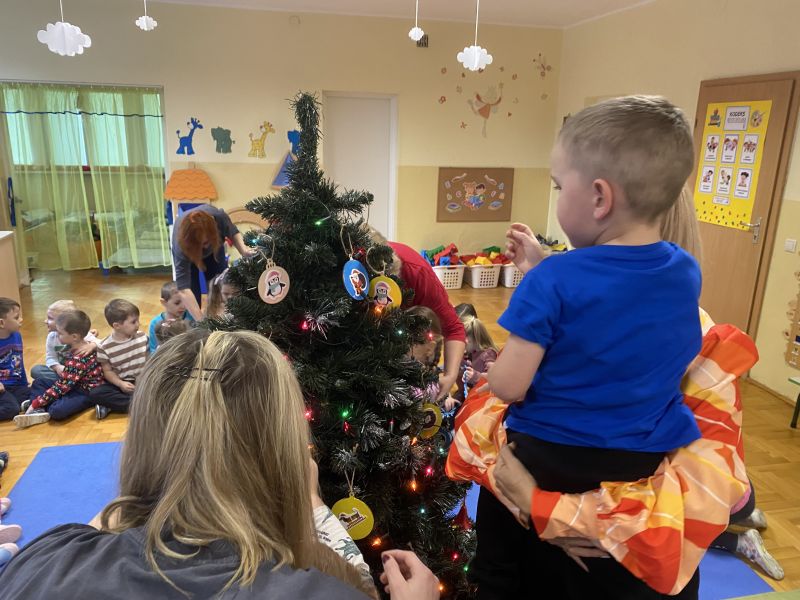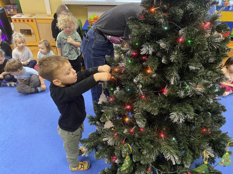 Wspólne strojenie choinki to nie tylko piękna tradycja, ale także doskonała okazja do integracji, współpracy oraz budowania świątecznej atmosfery w naszym przedszkolu.