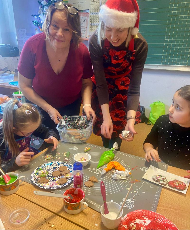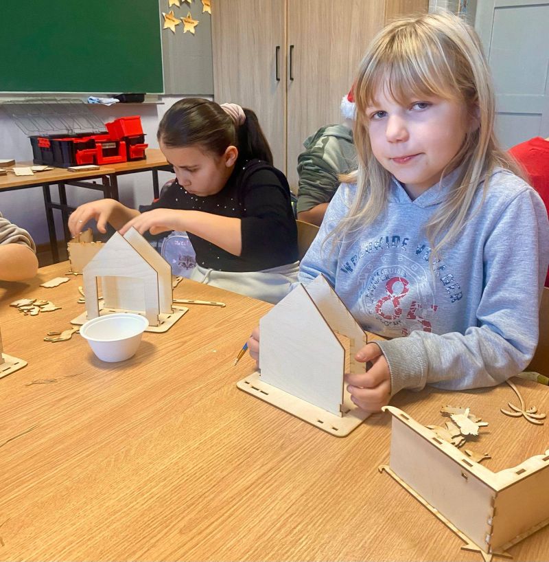 W poniedziałek, 15 grudnia, w Szkole Podstawowej nr 2 od samego rana unosił się wyjątkowy, świąteczny klimat. Już przy wejściu uczniów klas 1–3 witał radosny świąteczny elf, wprowadzając wszystkich w magiczny nastrój Bożego Narodzenia. Tego dnia uczniowie wzięli udział w warsztatach bożonarodzeniowych, podczas których wykonywali szopki bożonarodzeniowe z drewnianych elementów. Zajęcia rozwijały kreatywność, zdolności manualne oraz wyobraźnię dzieci, a efektem wspólnej pracy były piękne i oryginalne świąteczne dekoracje. Uczniowie klasy 3 uczestniczyli także w warsztatach zdobienia pierników i świątecznych ciasteczek. Dzięki zaangażowaniu rodziców oraz wsparciu Pani Anety, szkolna sala zamieniła się w pachnącą piernikową pracownię. Dzieci z ogromnym entuzjazmem ozdabiały pierniki kolorowym lukrem i dekoracjami, tworząc prawdziwe słodkie dzieła sztuki. Dodatkową atrakcją było wykonywanie naturalnych ozdób zapachowych z pomarańczy i goździków, które wypełniły szkołę aromatem świąt i wprowadziły wszystkich w wyjątkowy nastrój. Serdecznie dziękujemy Rodzicom za zaangażowanie i przygotowanie pierników oraz Pani Anecie za poświęcony czas i wsparcie podczas warsztatów świątecznych.